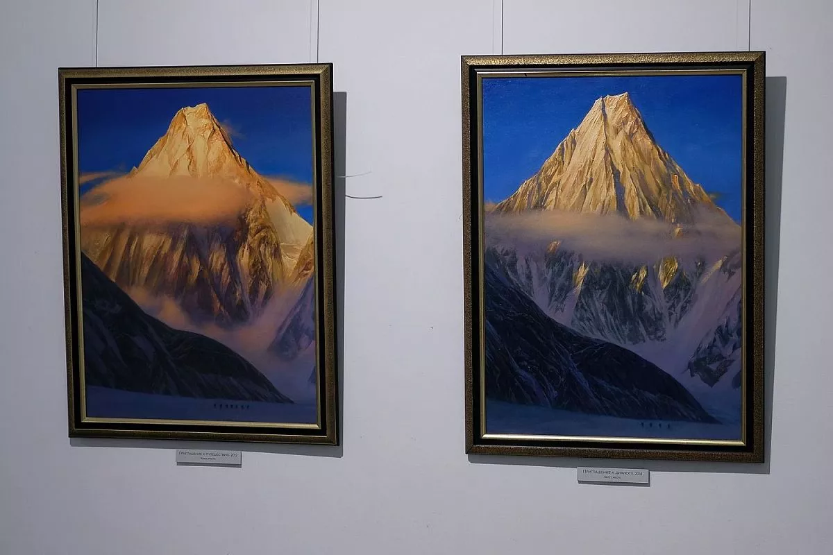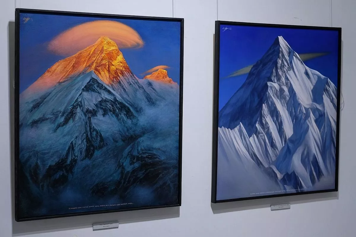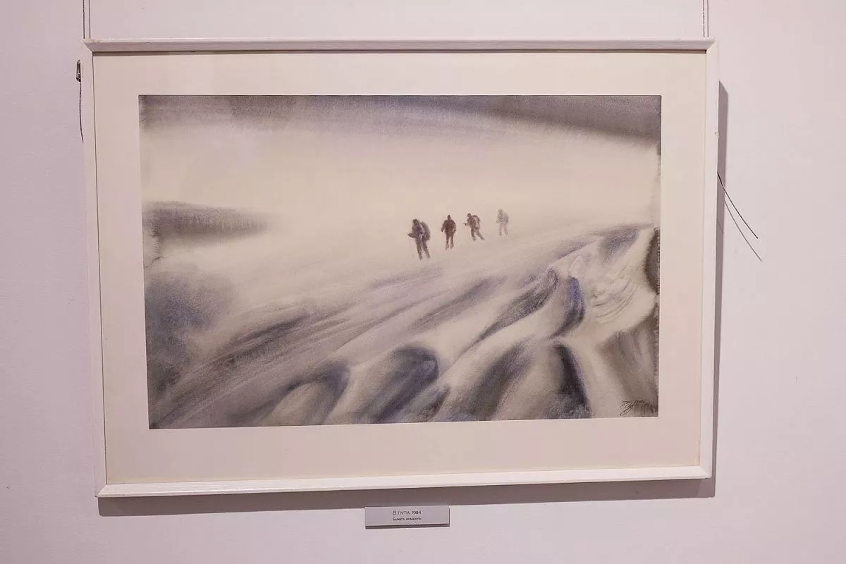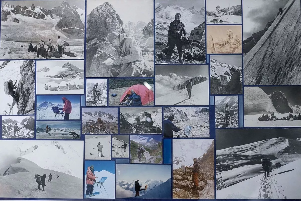 Главная тема представленных работ - романтический пейзаж высокогорья, натурные «портреты» высочайших вершин, что объясняется спортивным увлечением художника. На полотнах изображены покрытые белизной горные вершины, отвесные скалы, холодное дыхание ледников и бесконечная красота неба.