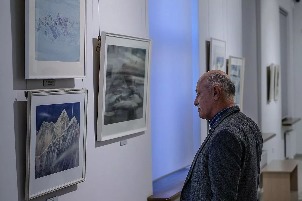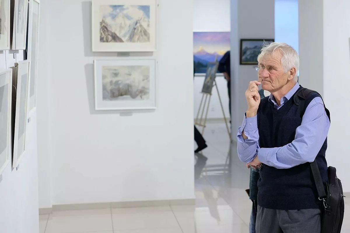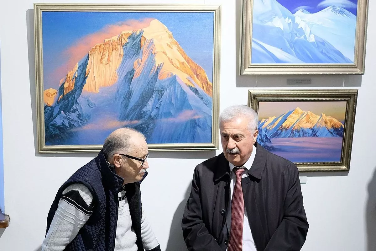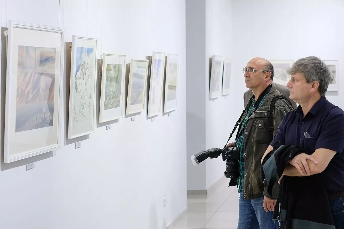 Главная тема представленных работ - романтический пейзаж высокогорья, натурные «портреты» высочайших вершин, что объясняется спортивным увлечением художника. На полотнах изображены покрытые белизной горные вершины, отвесные скалы, холодное дыхание ледников и бесконечная красота неба.