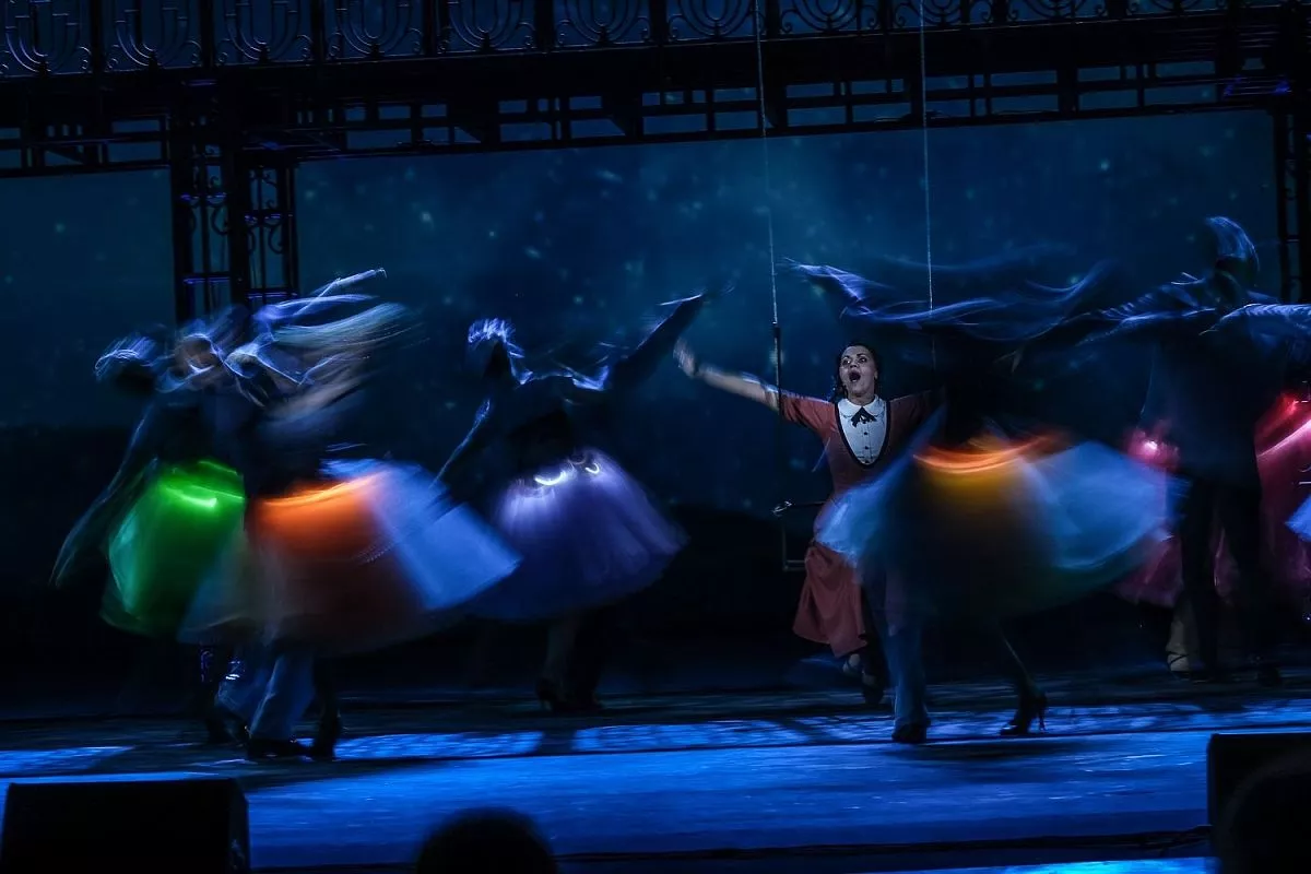 Часть масштабных декораций делали на заказ в Москве. Например, длинный, но легкий, словно воздушный мост. А вот занавес, театральные шторы расписывали мастера нашего пошивочного цеха вручную.