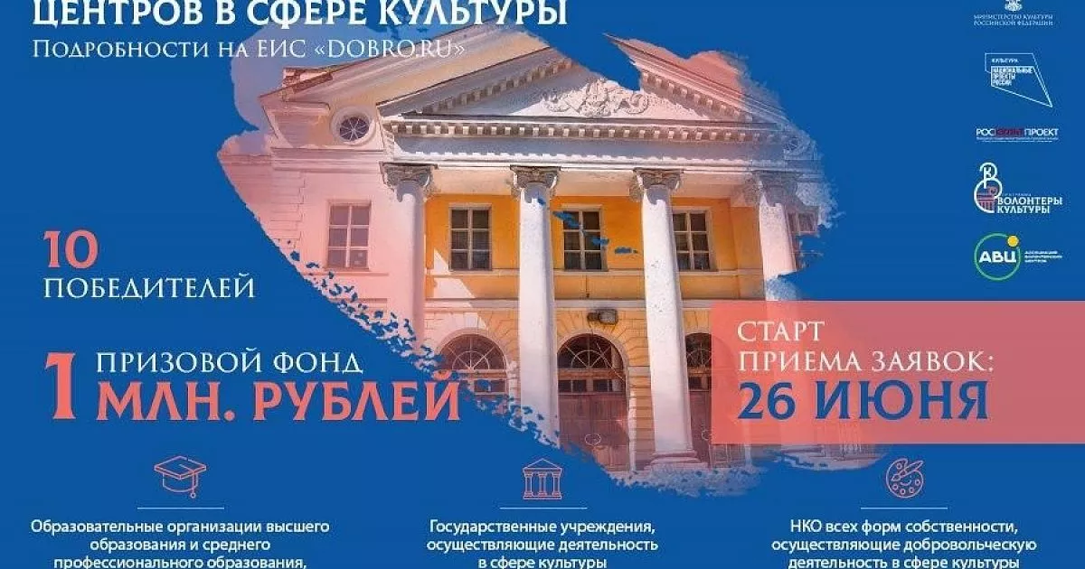 Десять лучших волонтерских центров в сфере культуры получат по 100 тысяч рублей. Деньги можно направить на развитие центра добровольчества, информационную поддержку и сопровождение со стороны Ассоциации волонтерских центров.