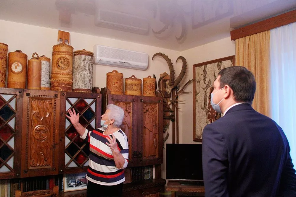 О жизни и творчестве Бориса Куприянова главе Краснодара рассказала вдова художника Римма Ивановна. Вместе с Риммой Куприяновой Евгений Первышов посмотрел представленные в музее работы из бересты, кедра, различных природных материалов. Обсудил возможность проведения экспозиции на выставочных площадках в Краснодаре.