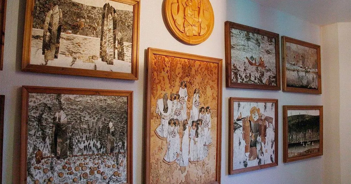 В работе художник не применял краску — ее роль выполняла береста во всей своей палитре цвета и разнообразии фактуры.