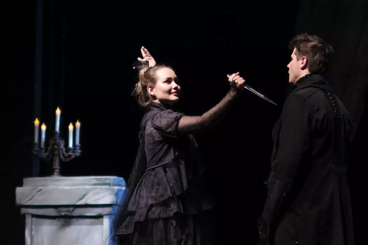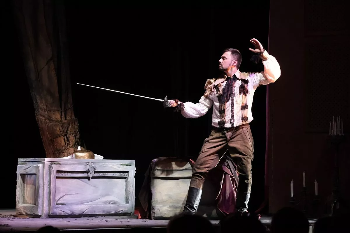 - Спектакль пронизан пластикой, которая идет от внутреннего действия, так как подобная литература требует особой гибкости и точного жеста, аккуратно следует тексту пьесы, но при этом облекая готический романтизм в форму близкую сегодняшнему зрителю, особенно молодому. Трагедия, поданная отчасти через комическую ситуацию, где ирония и юмор пронизаны философским взглядом, скреплённым гениальным поэтическим словом, - рассказали в театре.