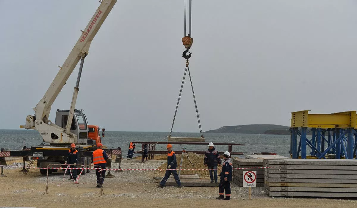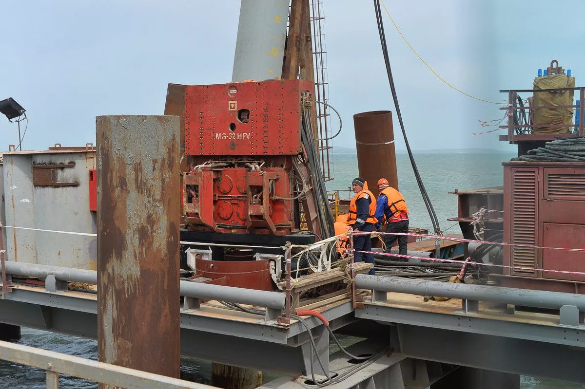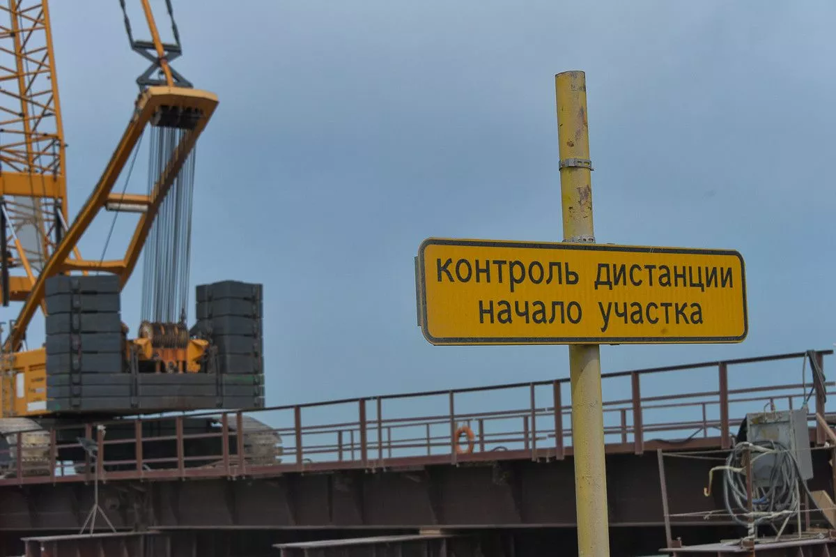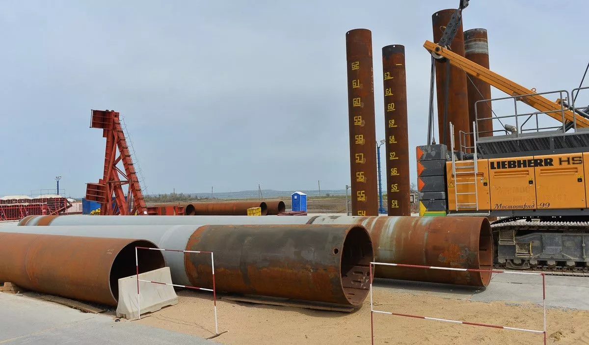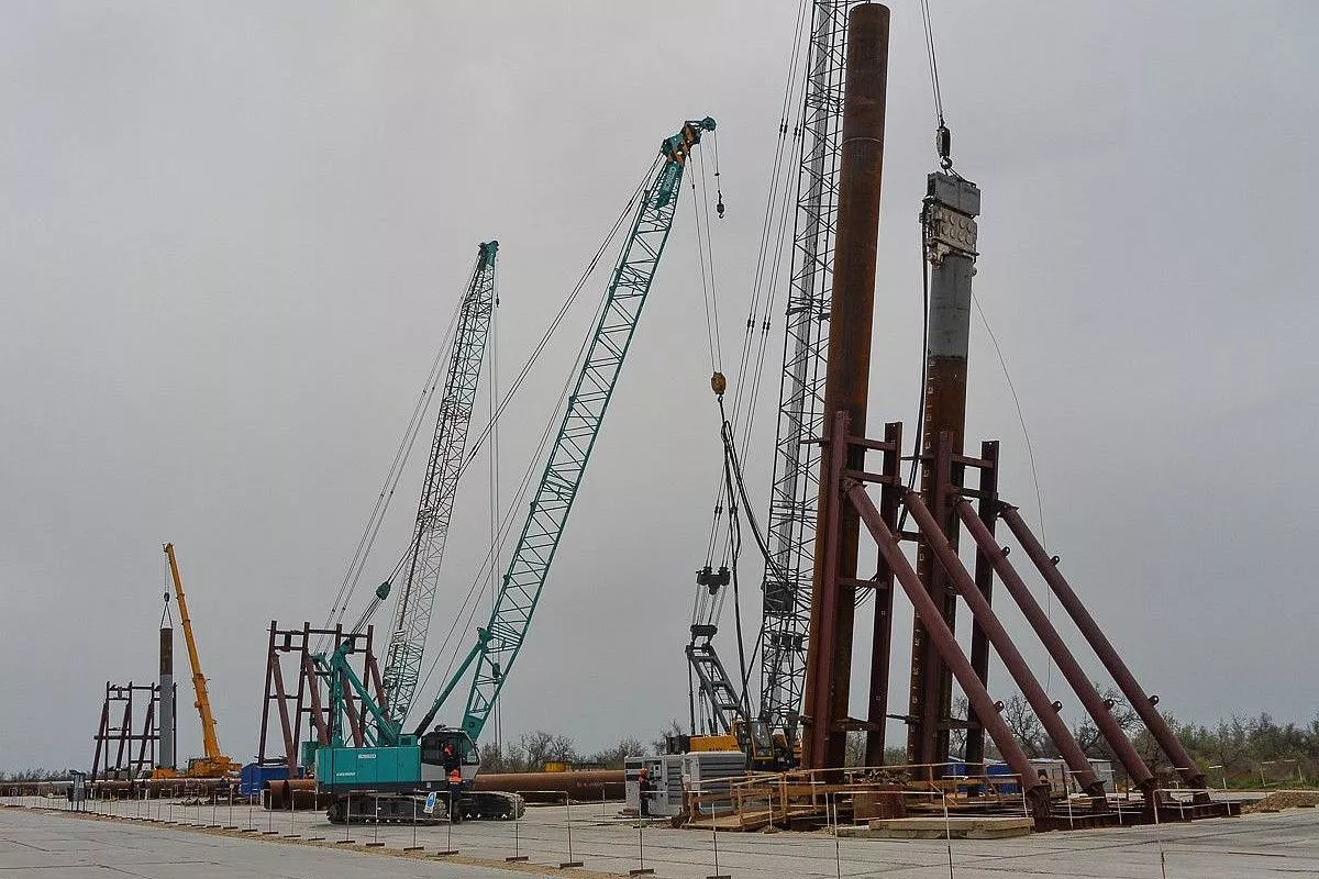 Здесь возвели первую опору автомобильной трассы будущего моста.