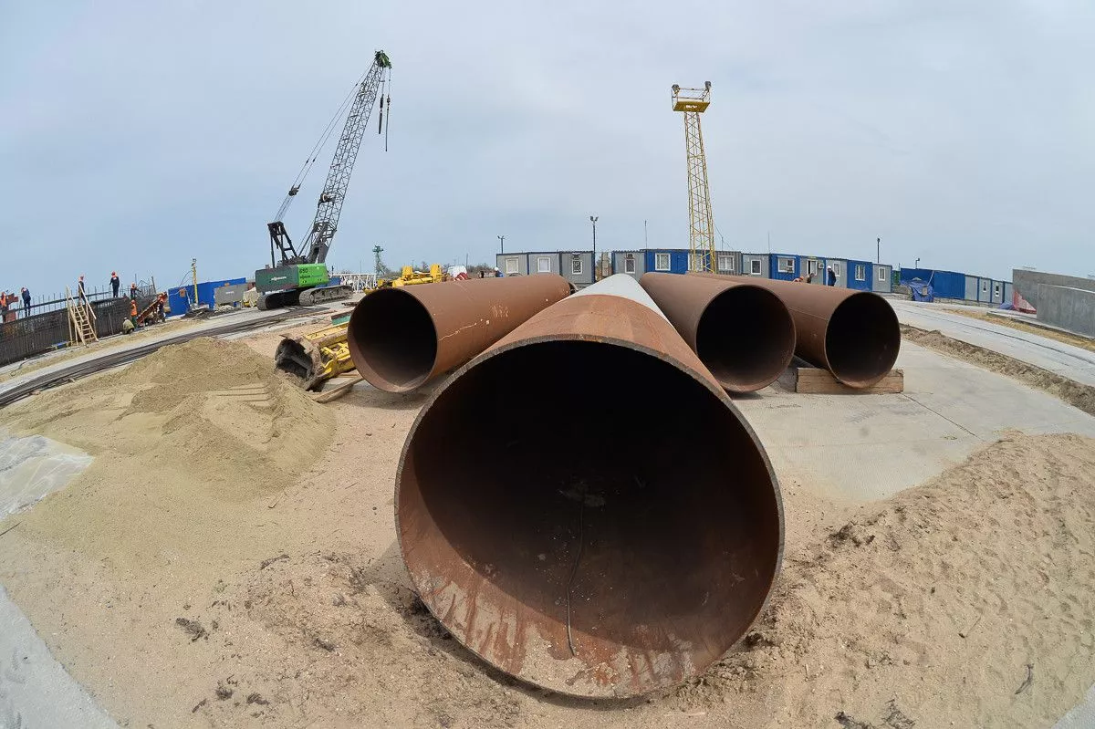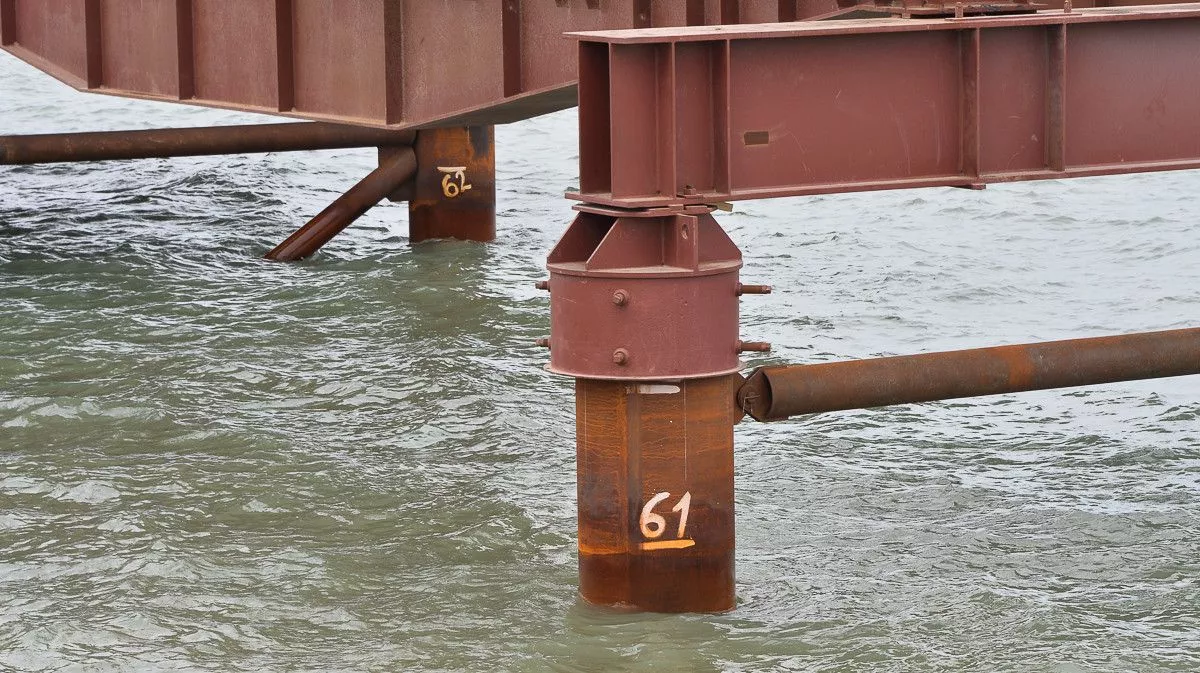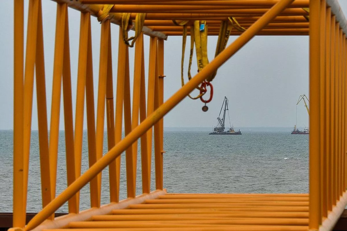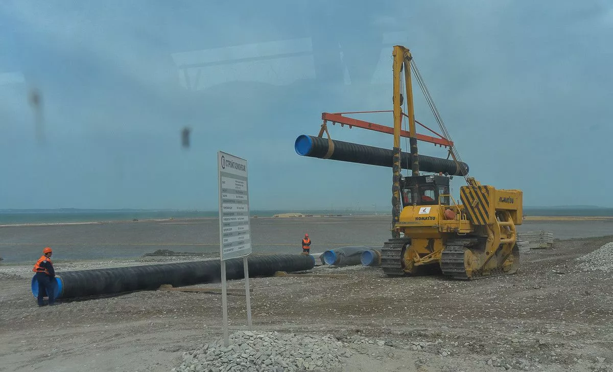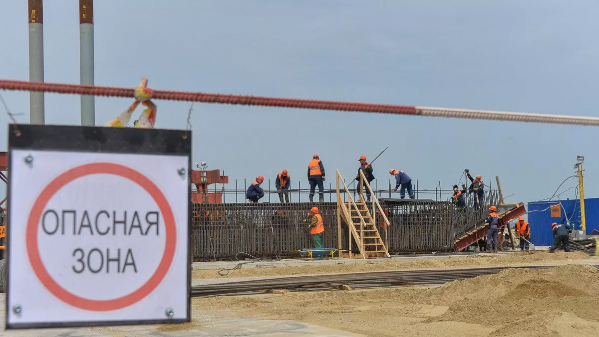 Здесь возвели первую опору автомобильной трассы будущего моста.