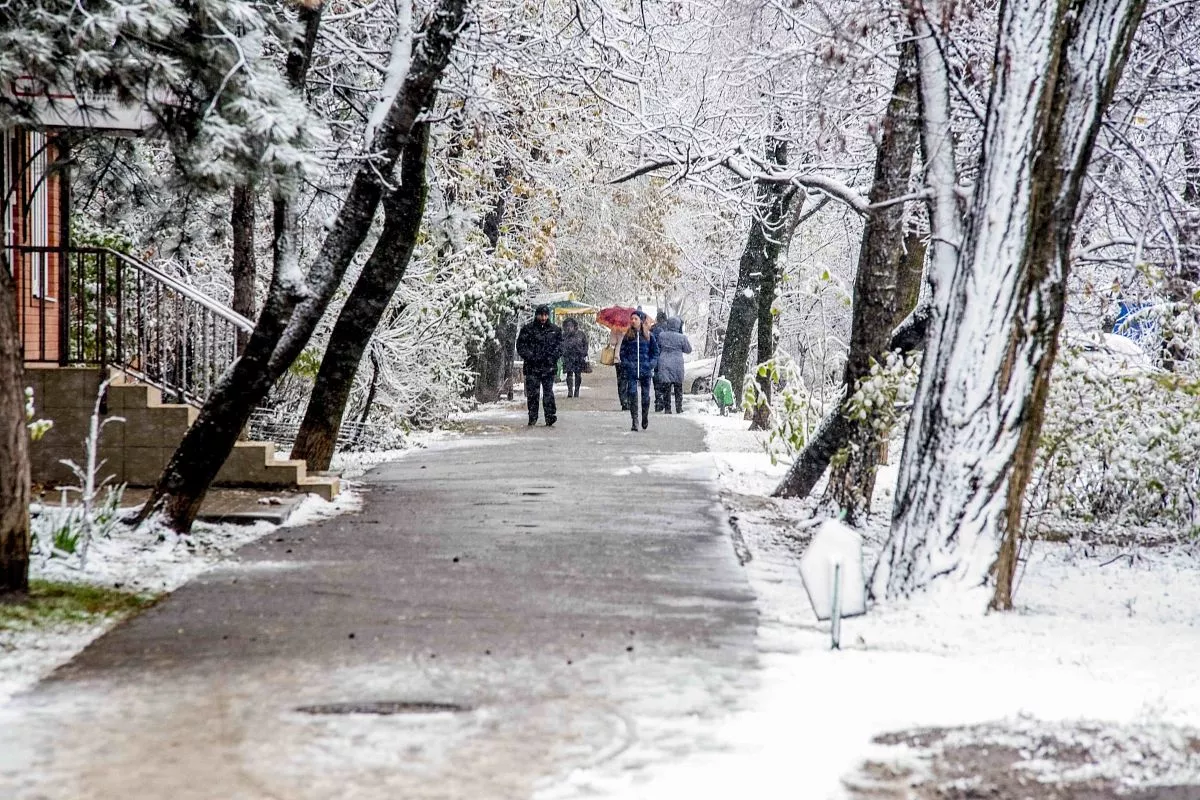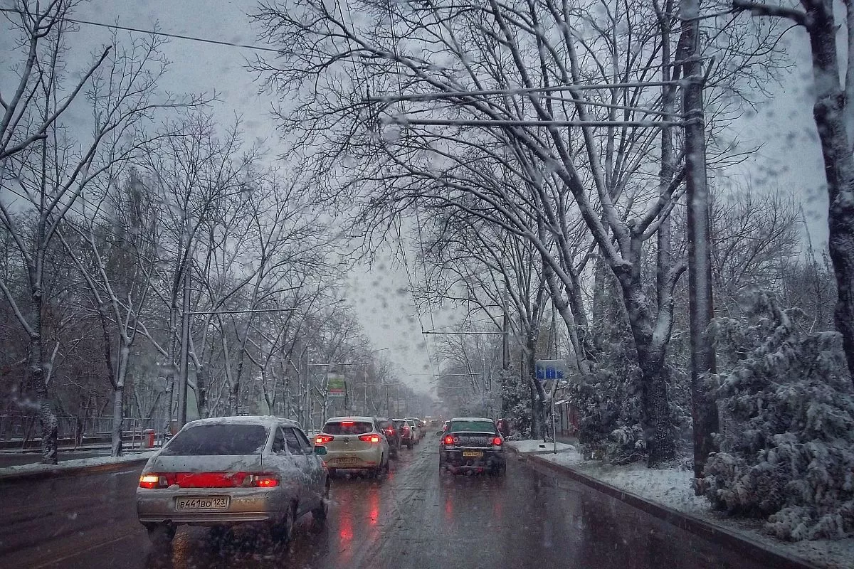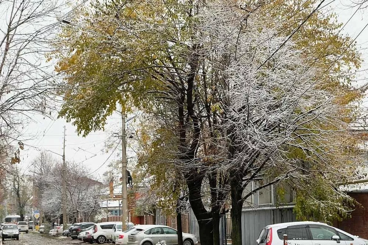 А фотокорреспонденты "КН" первый ноябрьский снег в Краснодаре увидели так