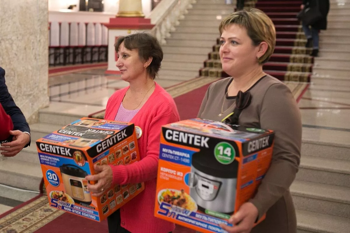Подарков для доярок было столько, что пришлось даже искать дополнительный транспорт, чтобы участницы бала могли увезти их домой.