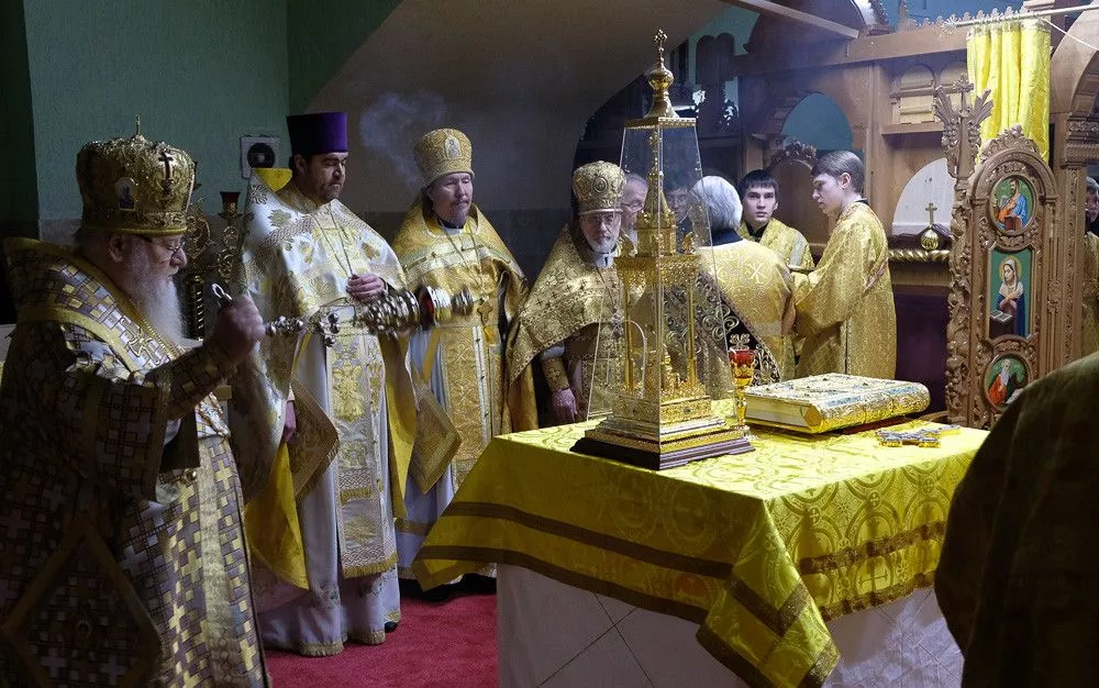 После чина освящения митрополит Исидор совершил первую архиерейскую Литургию в новоосвящённом приделе святителя Спиридона Тримифунтского, чьи мощи покоятся на греческом острове Корфу.
