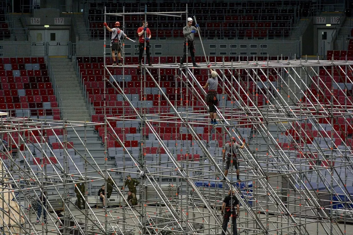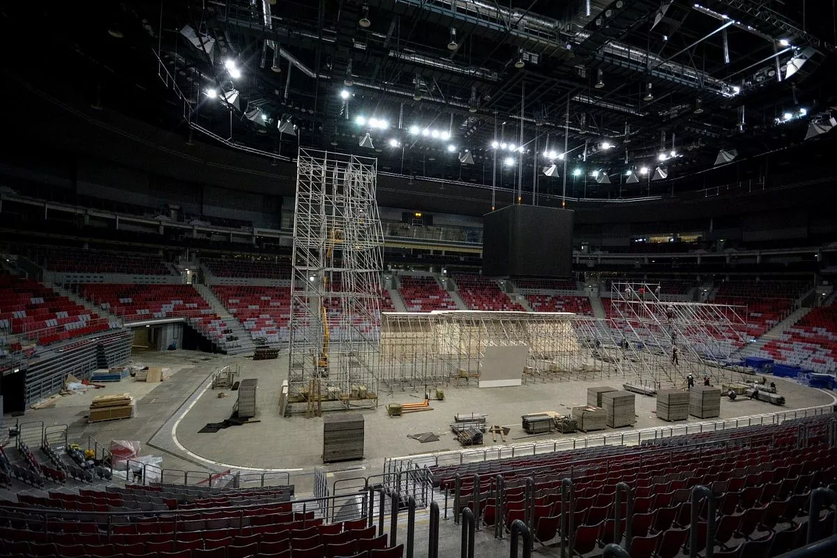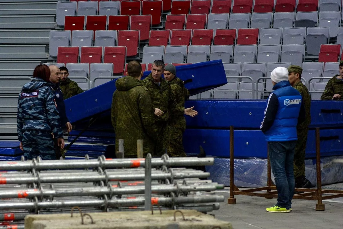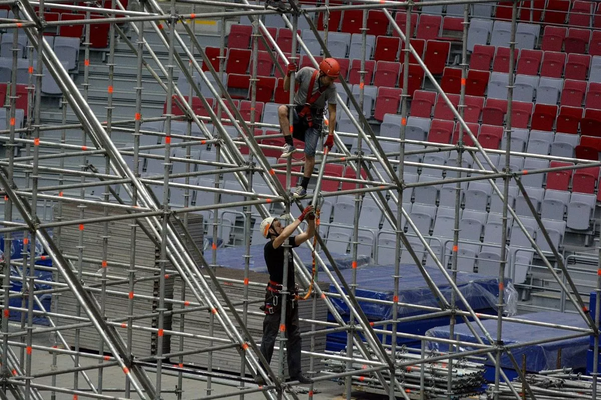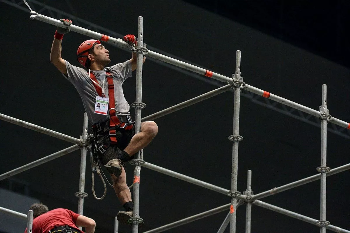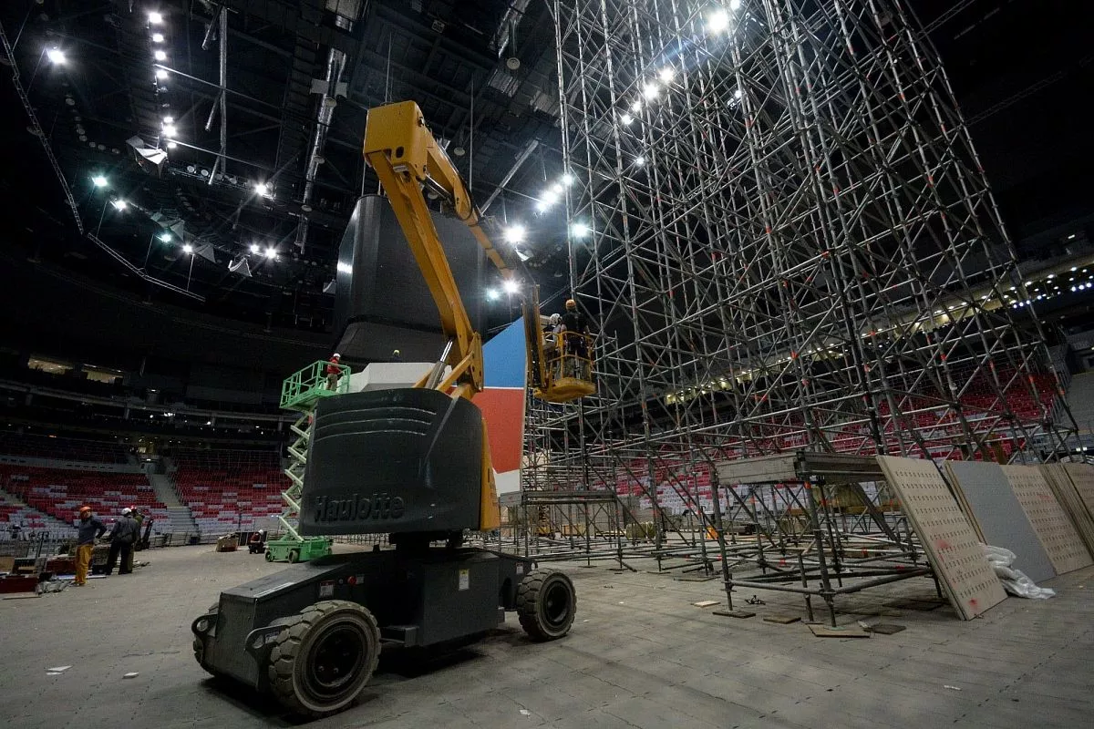 Установкой скалодрома в "Большом" занимаются порядка 35 человек - профессиональных промышленных альпинистов. Сборка началась в понедельник, 13 февраля. Полностью конструкция будет собрана к пятнице, 17 февраля.