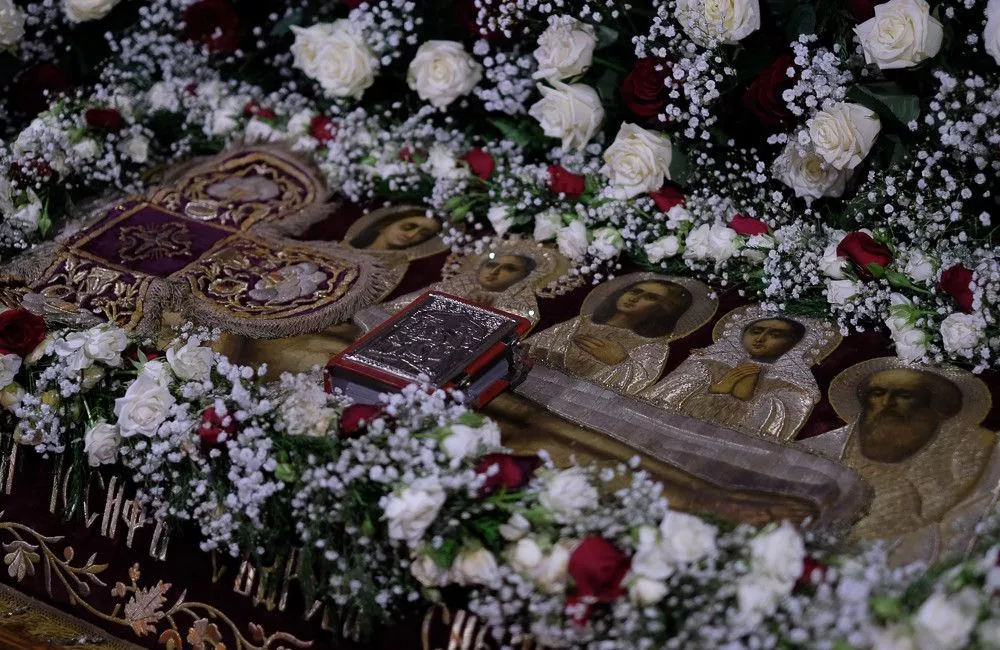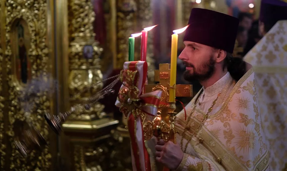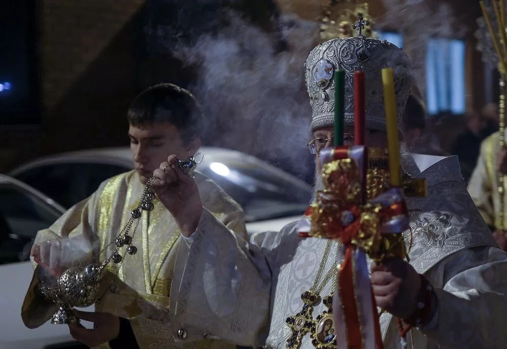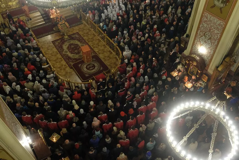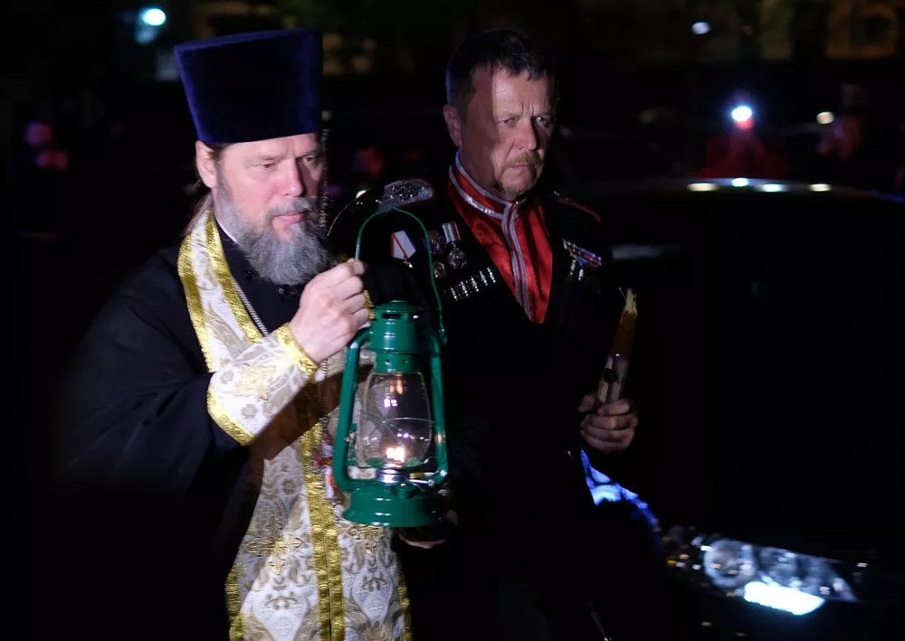 Перед богослужением в храм была доставлена частица Благодатного огня. На Кубань из иерусалимского Храма Гроба Господня ее чартерным рейсом привезла делегация духовенства и казаков.