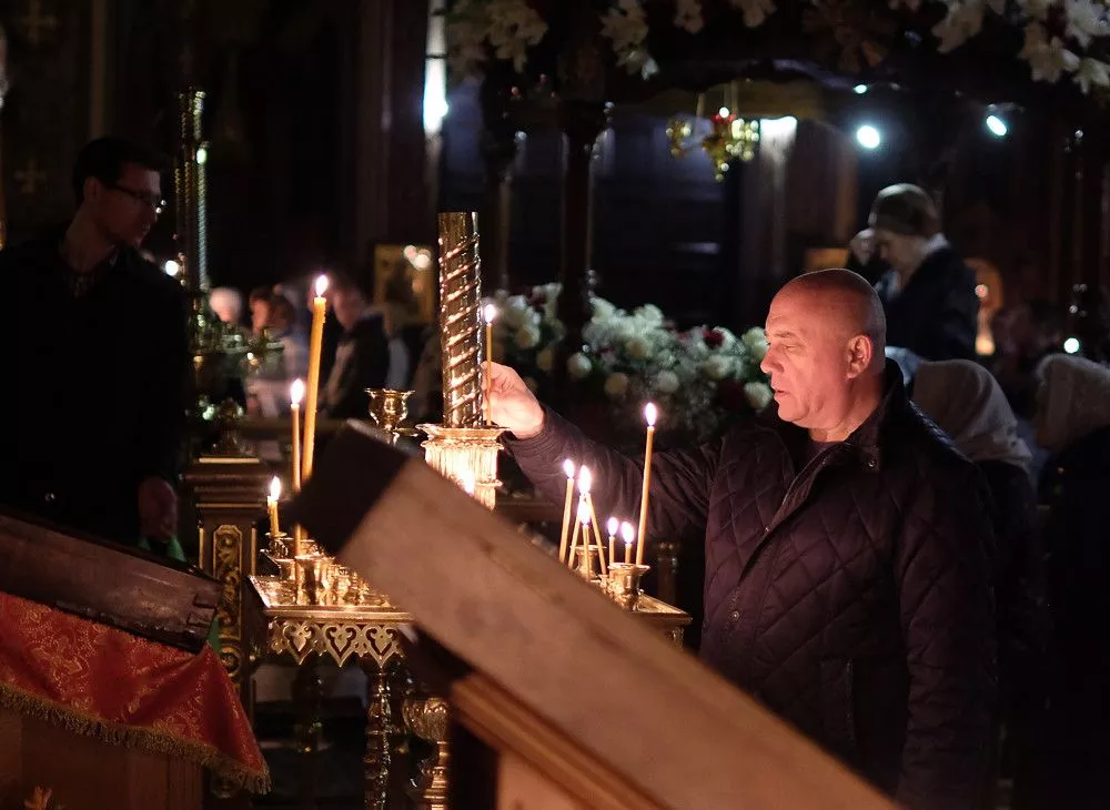 Пасхальную службу в храме, который в народе прозвали «красным» – по цвету его фасада, посетил губернатор Кубани Вениамин Кондратьев. Торжественные службы минувшей ночью прошли более чем в 500 храмах края.