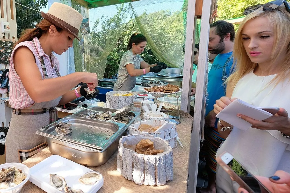 Только в первый день фестиваль принял не меньше пяти тысяч человек. В прошлом году посетители умяли больше тысячи черноморских устриц и сотню мидий, 3500 бургеров. Сколько будет съедено в этот раз, организаторам только предстоит подсчитать. А у вас есть шанс внести в гастрономический рекорд свою лепту и попробовать черноморские деликатесы. Фестиваль будет встречать гостей и сегодня.