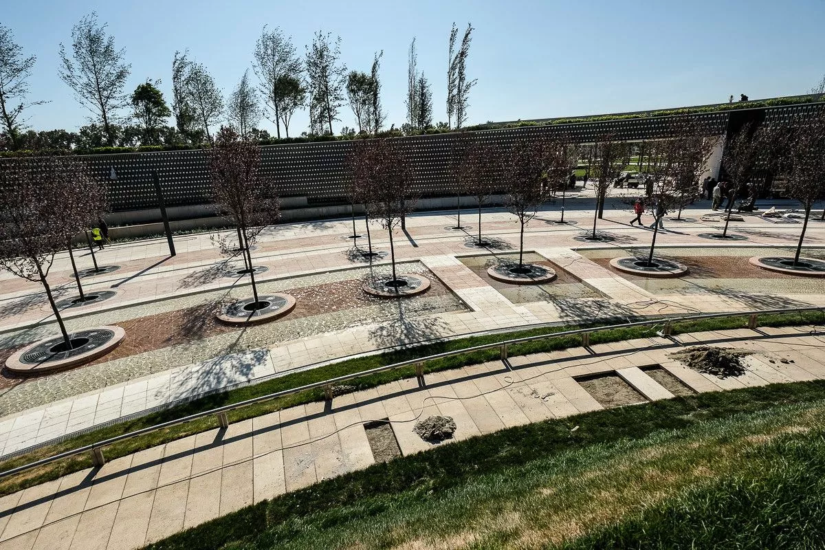 Техническое открытие парка связано с желанием предоставить горожанам возможность проводить здесь время еще до завершения всех работ по проекту. Строительство некоторых объектов и монтаж дополнительных элементов освещения будут продолжаться до конца года, озеленение — до весны 2018 года.