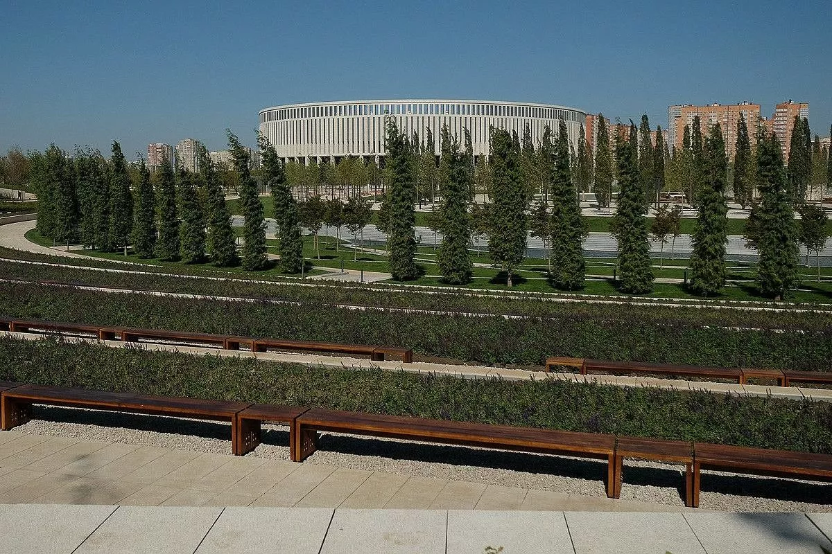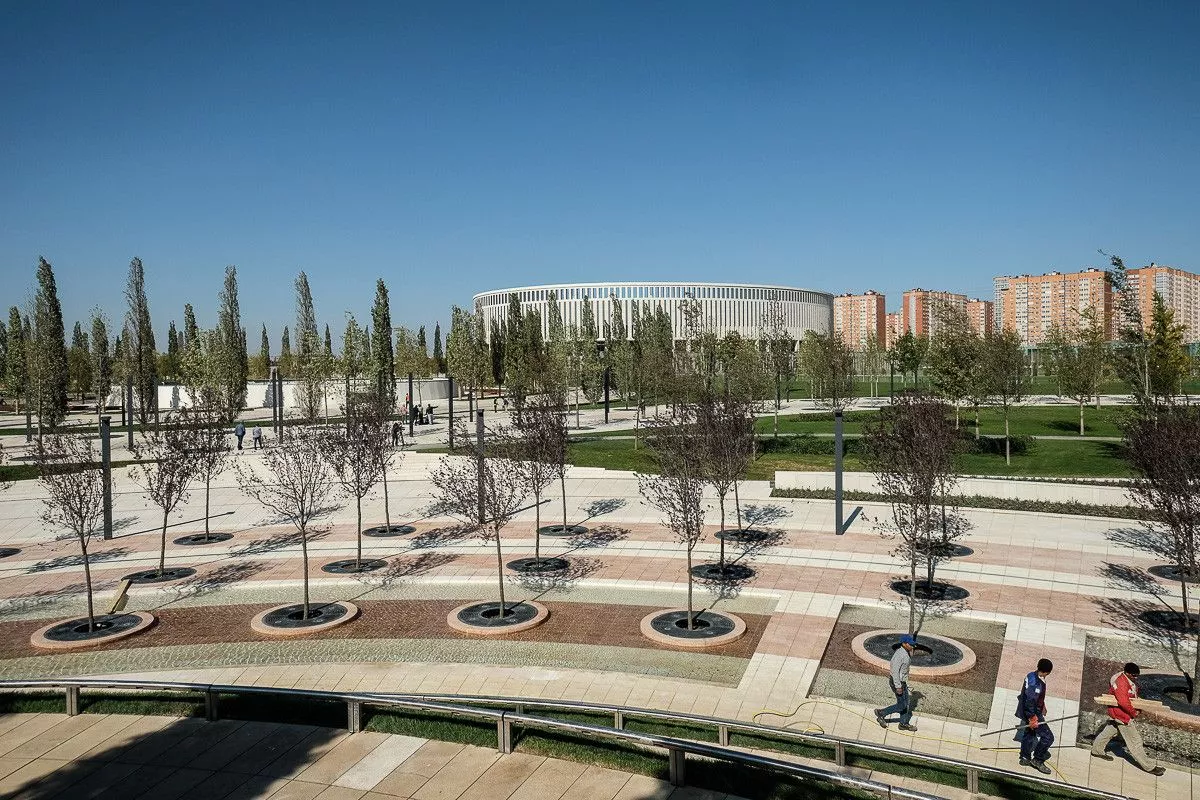 28 сентября состоялось техническое открытие парка вокруг стадиона «Краснодар», его первыми гостями стали журналисты.