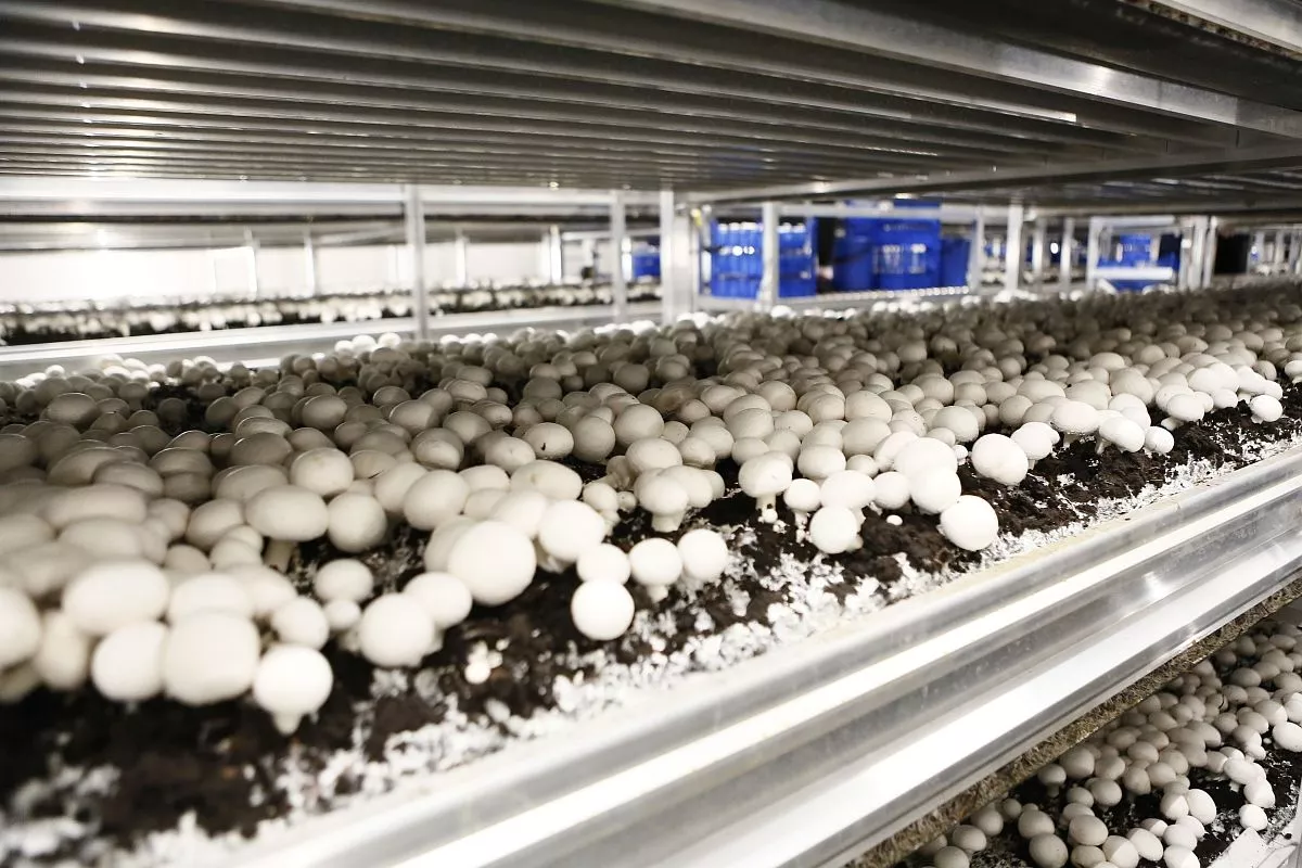 Завод по производству грибов размещается на более чем 50 гектарах и на сегодняшний день является крупнейшим в России, его мощность позволяет производить почти 6,5 тысяч тонн грибов в год.