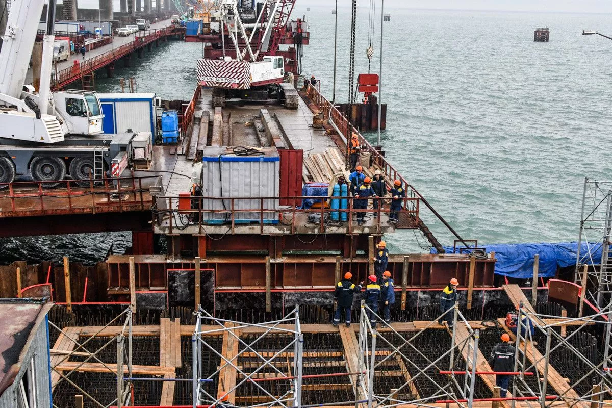 К началу этой недели на Крымском мосту возвели все опоры автодорожной части. Из 288 опор 85 находятся в морской акватории, из-за чего работа над их сооружением была наиболее трудоемкой. В основание опор под автодорогу погрузили более трех тысяч свай.