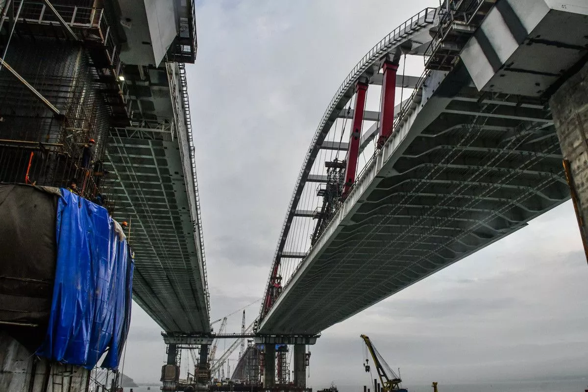 Полотно автодорожной части моста собрали уже на 95%. На морском участке от Тузлинской косы до острова Тузла сборка пролетов велась методом поперечной надвижки. На участках от острова до фарватера и от фарватера до керченского берега пролеты строили методом продольной надвижки.