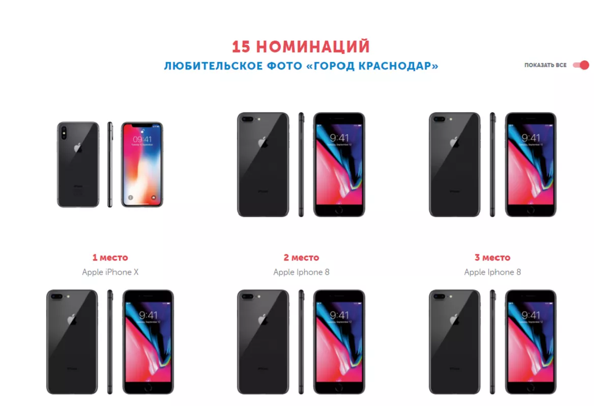 Главному победителю в каждом из 15 муниципалитетов, где будут установлены фоторамки, достанется Apple Iphone X, авторам других селфи, набравших наибольшое количество голосов, достанутся Iphone8 или Ipad. Всего будет розыграно 105 призов.