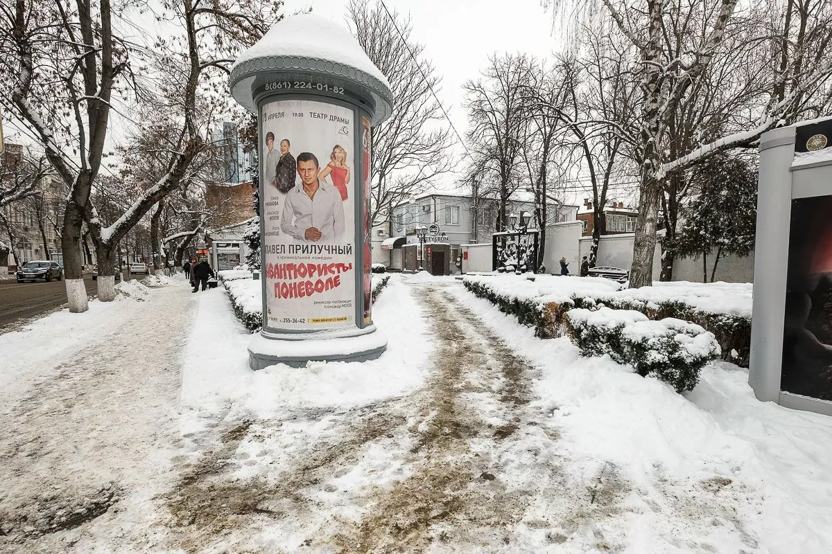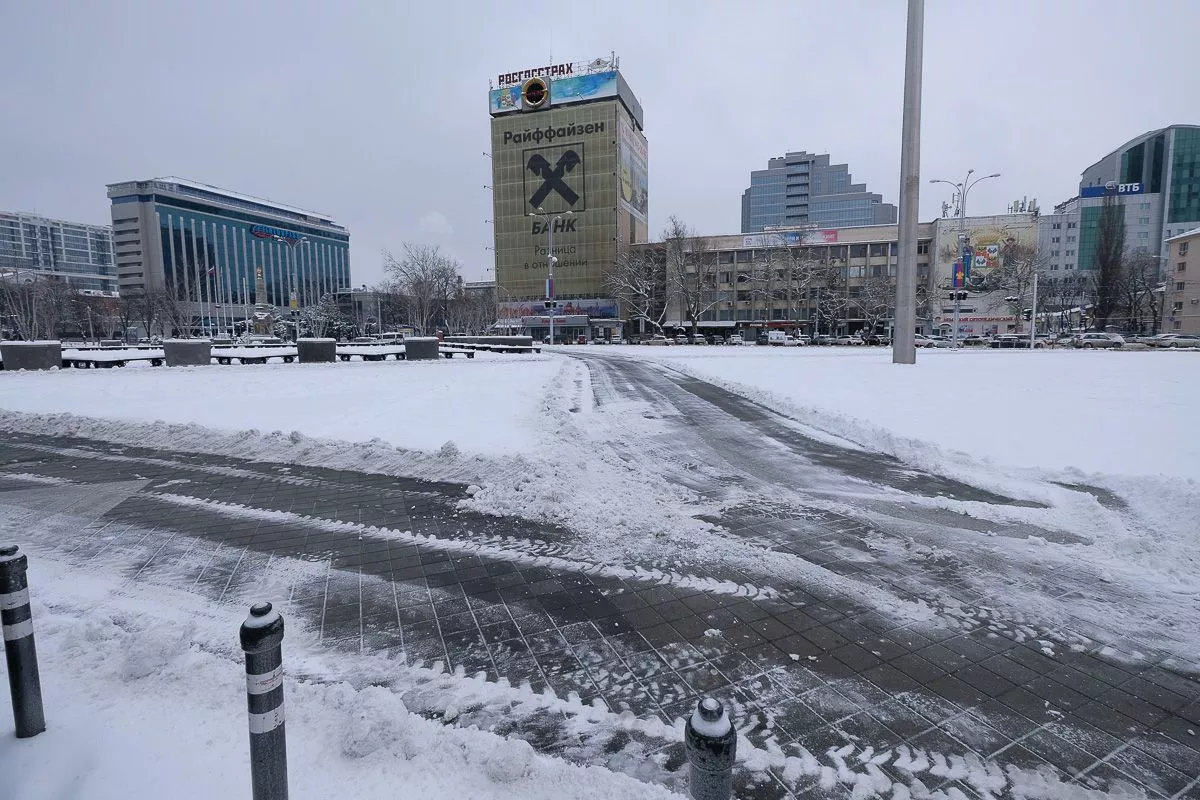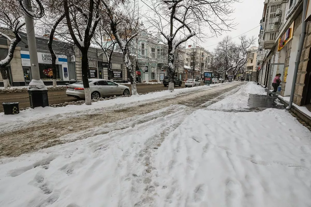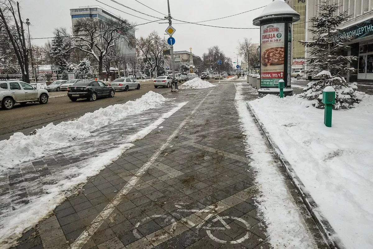 25 февраля в столицу Кубани пришла настоящая зима: город замело снегом, засыпанными оказались все дороги и пешеходные зоны.