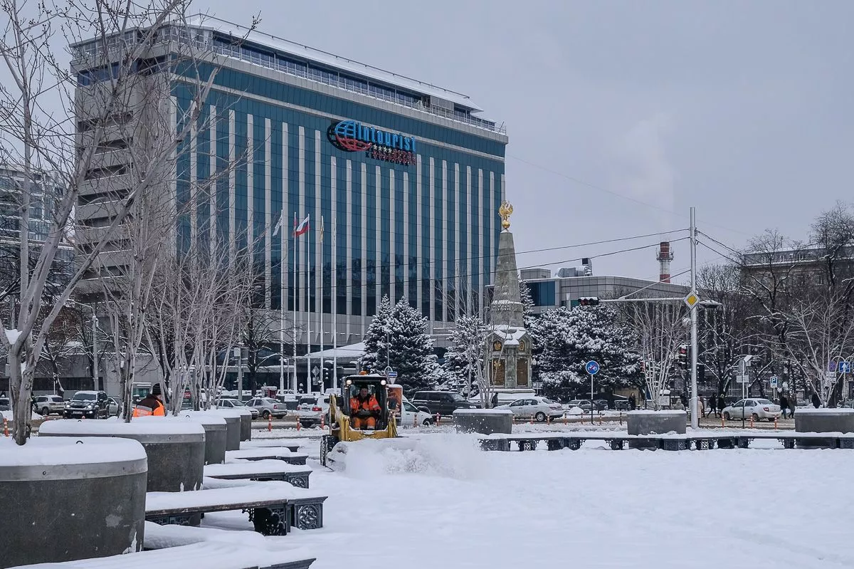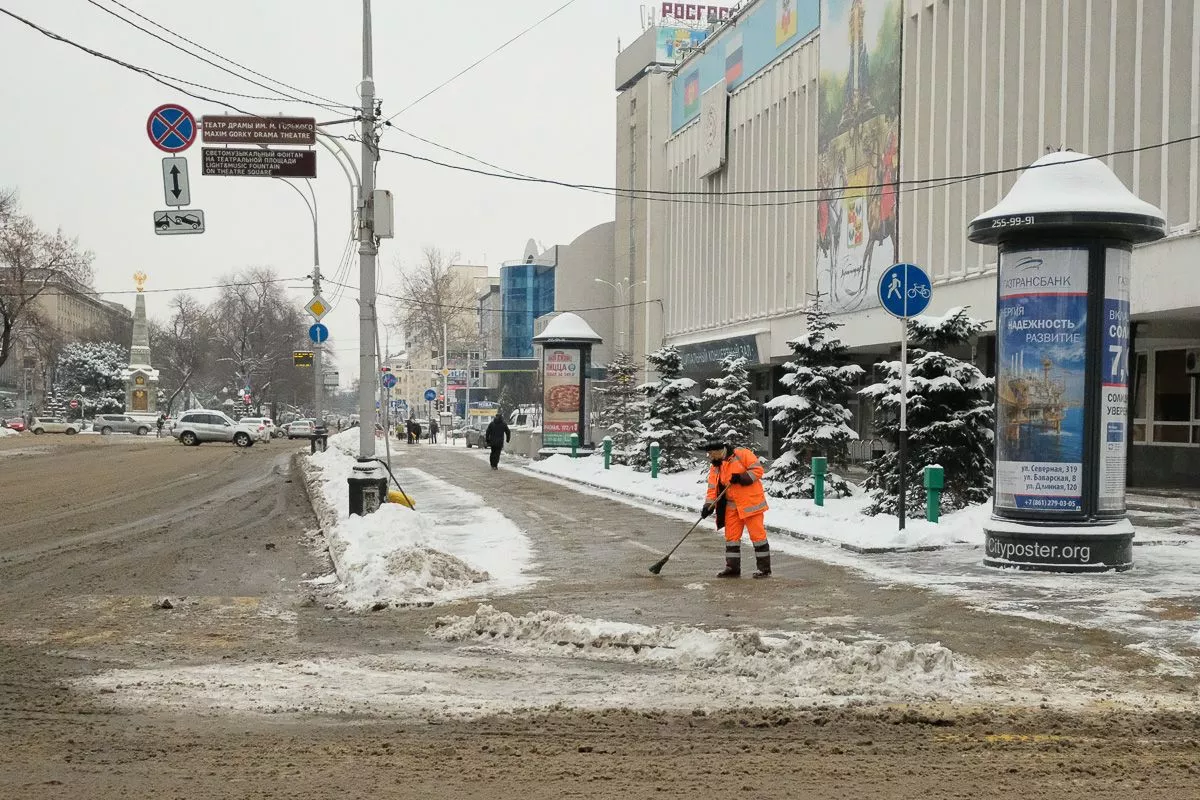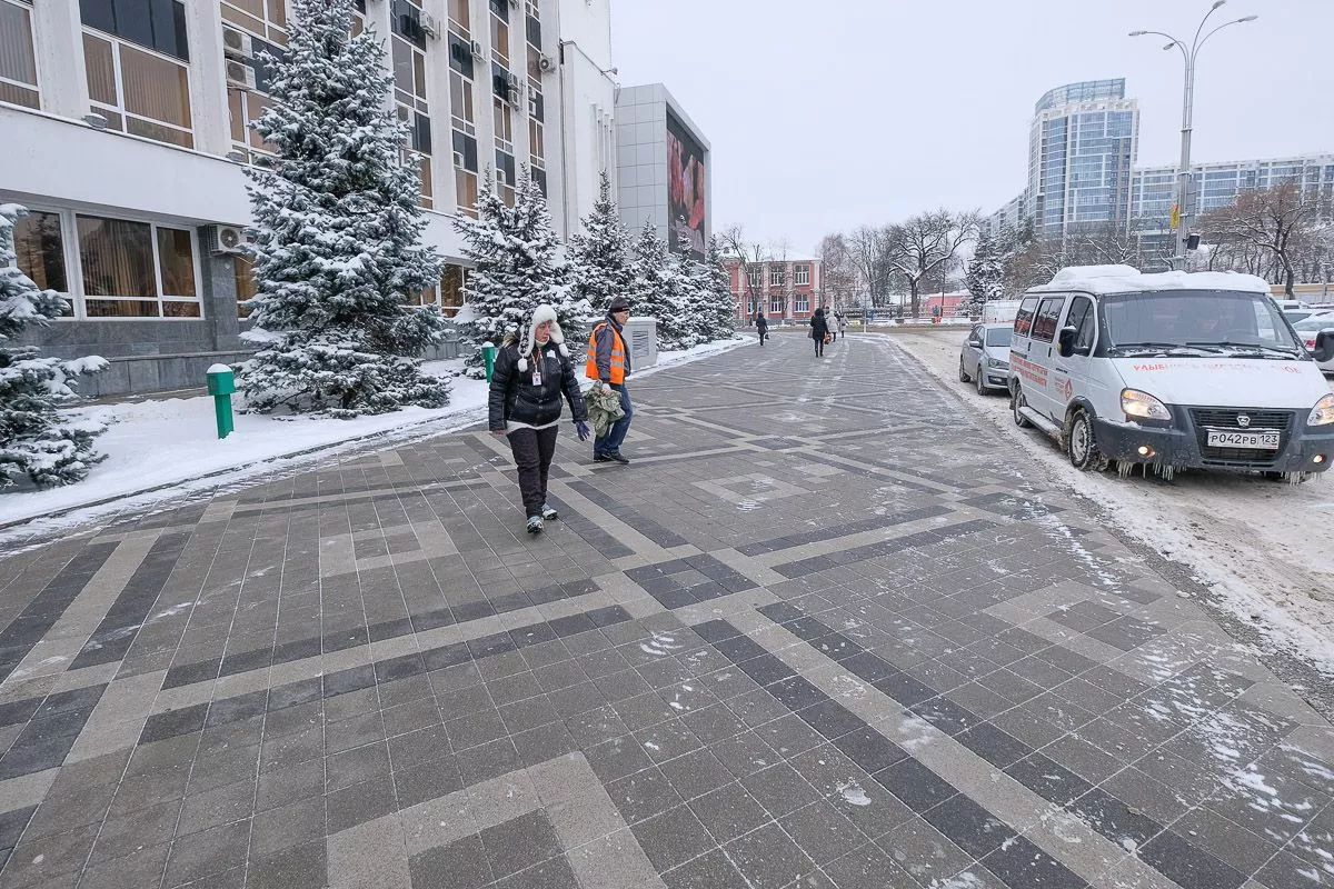 Корреспондент «Кубанских новостей» прогулялся по заснеженному Краснодару и посмотрел, как работают специалисты.