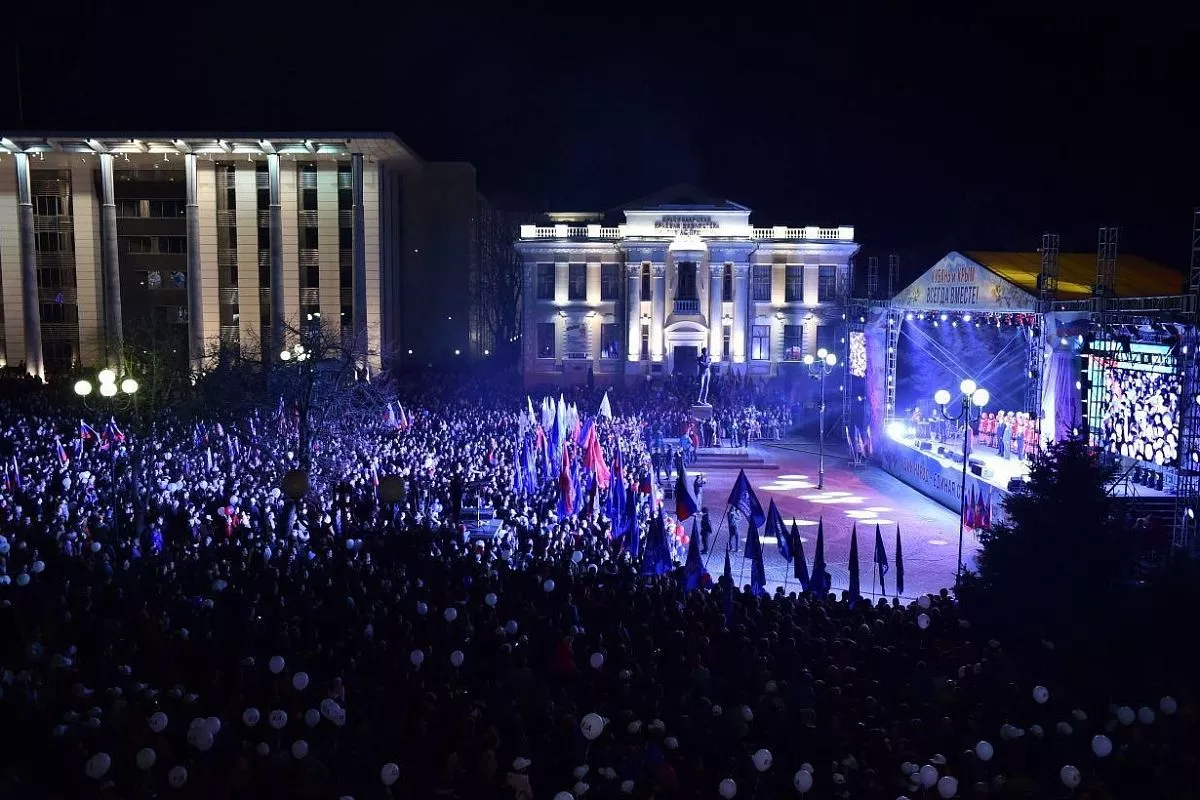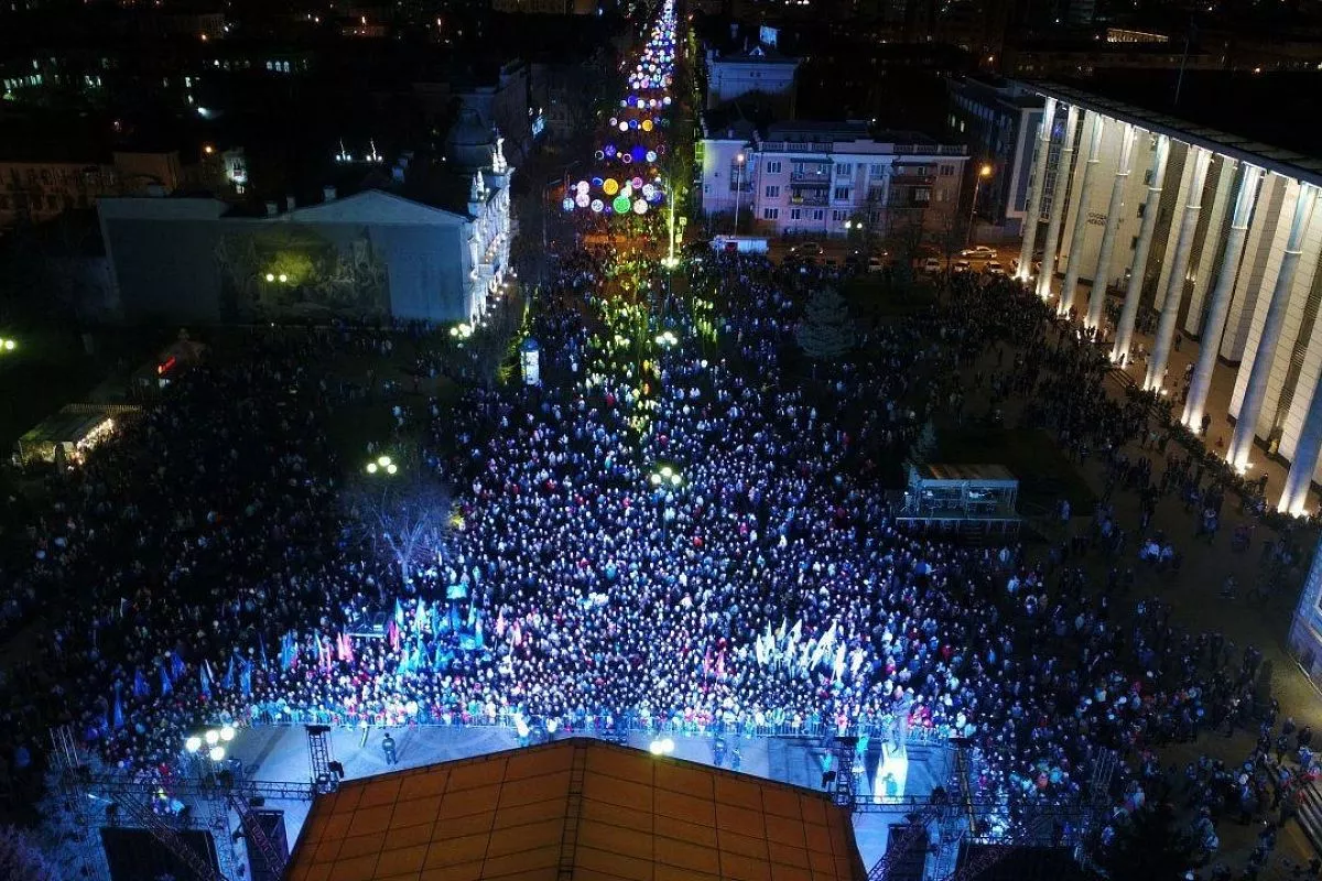 На Пушкинской площади в Краснодаре начались праздничные мероприятия, куда вечером пришли более 21 тысячи жителей и гостей края.