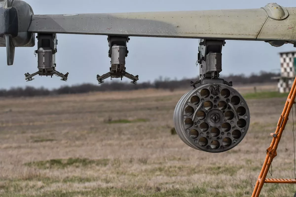 Военные летчики выполняют пуски неуправляемых ракет, сброс авиабомб и стрельбы из 30-мм авиационной пушки по наземным мишеням, имитирующим военную технику и живую силу условного противника.