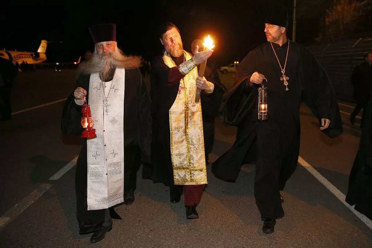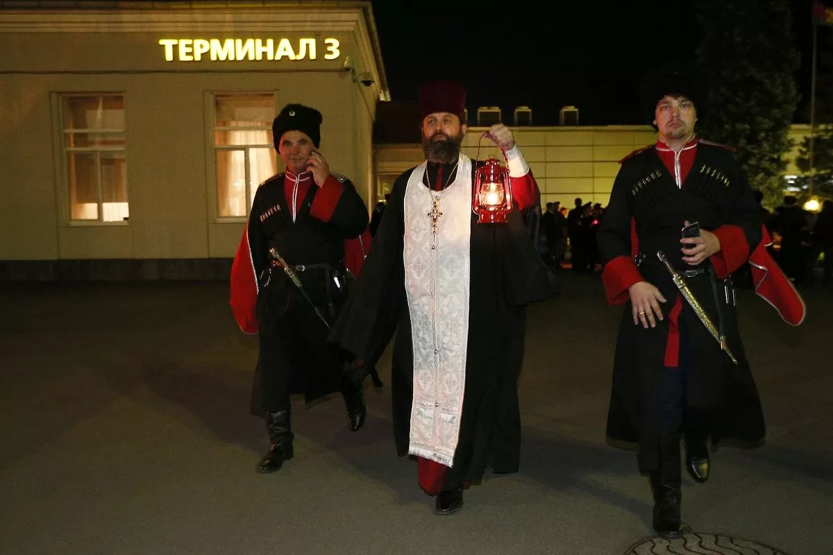 Из аэропорта и кафедрального собора зажженные от огня светильники отправляют в храмы Краснодара и Екатеринодарской епархии.