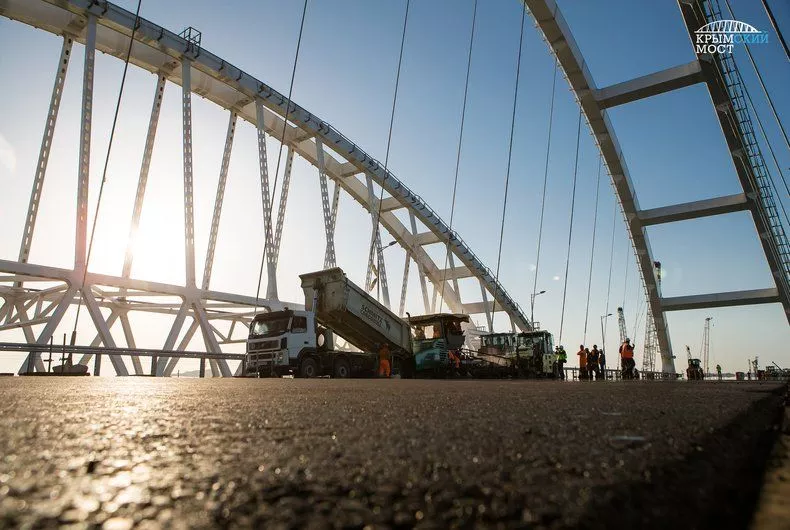 «По трассе Крымского моста асфальтирование выполнено на 75 %, а готовность полотна достигает 80 %. Как только завершим укладку асфальта, приступим к нанесению дорожной разметки и установке дорожных знаков», - сообщил заместитель гендиректора компании «СГМ-Мост» Дмитрий Кондаков.