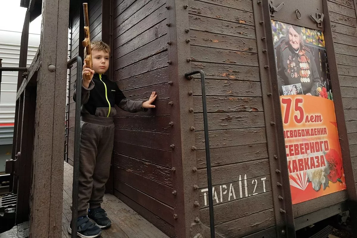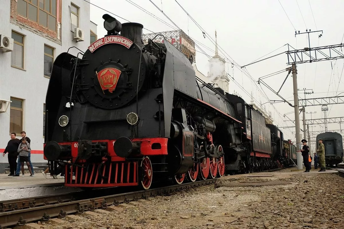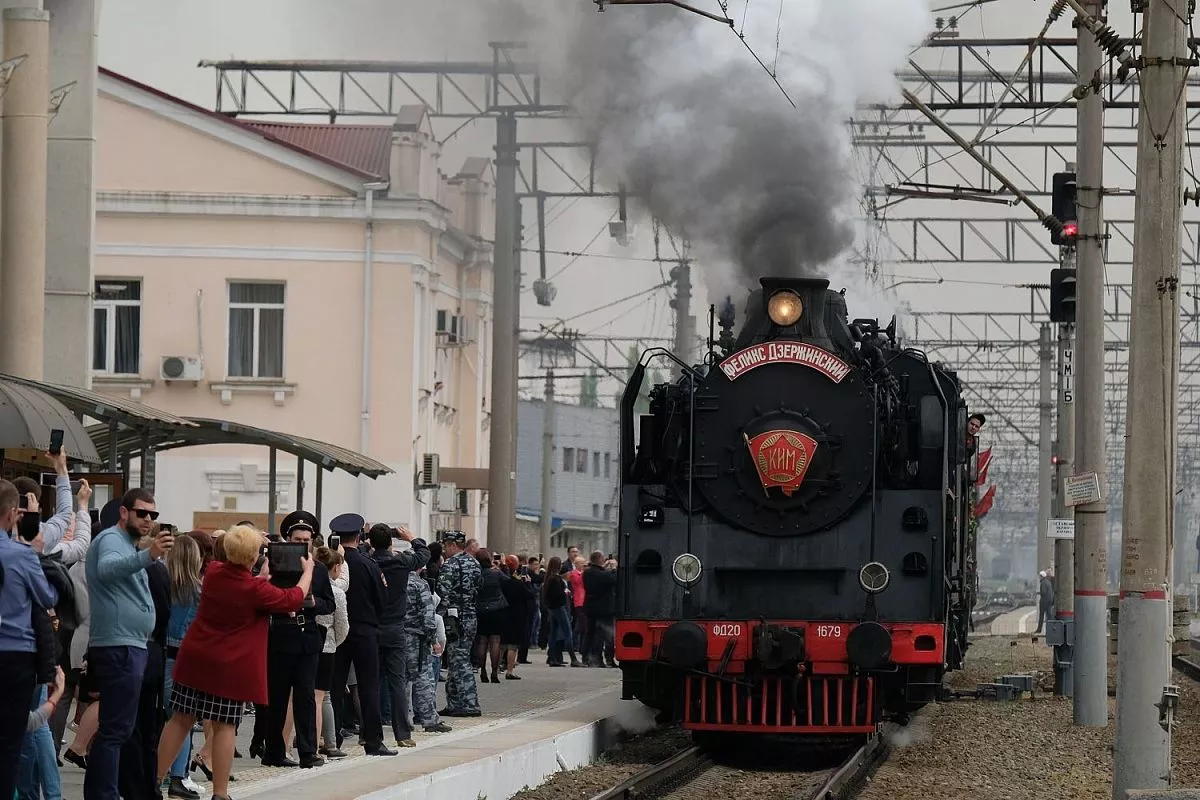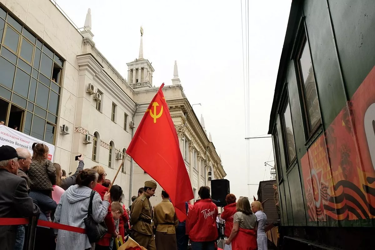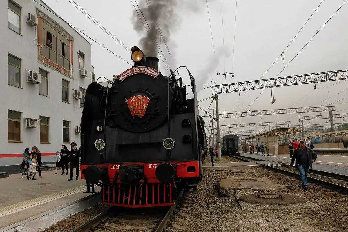 Ретро-поезд «Победа» сформирован из вагонов времен Великой Отечественной войны. Его ведут два паровоза, один из которых принимал участие в Сталинградской битве. В составе крытые товарные вагоны, платформы для перевозок военной техники, салон-вагон. Вся техника – из экспозиции музея железнодорожной техники СКЖД.