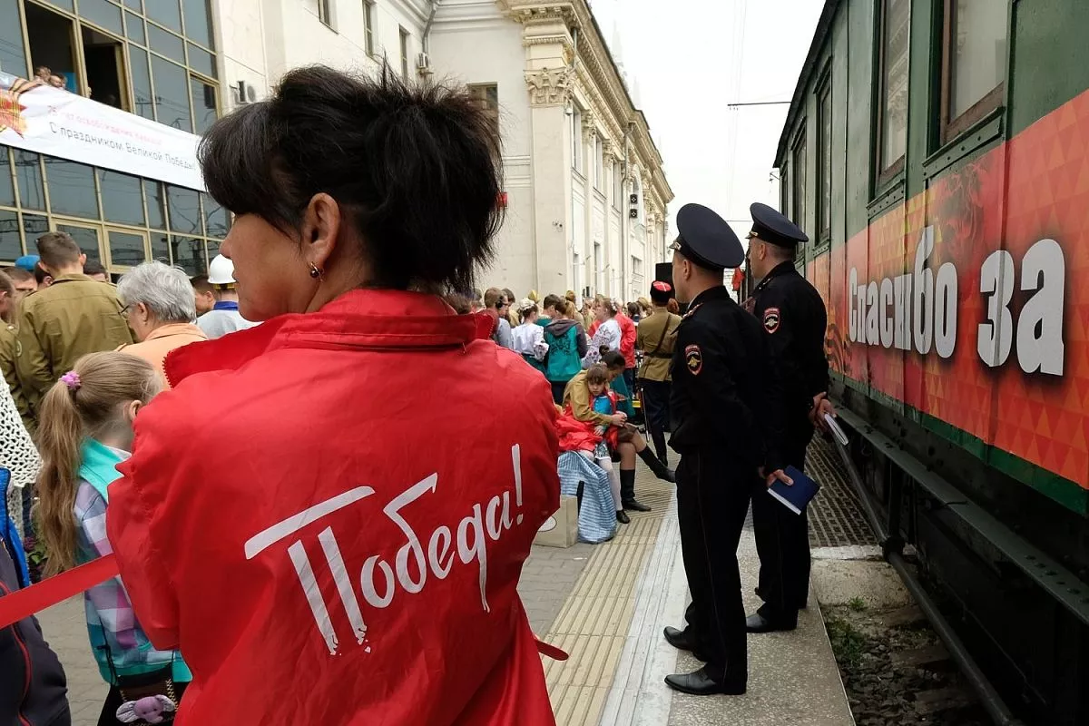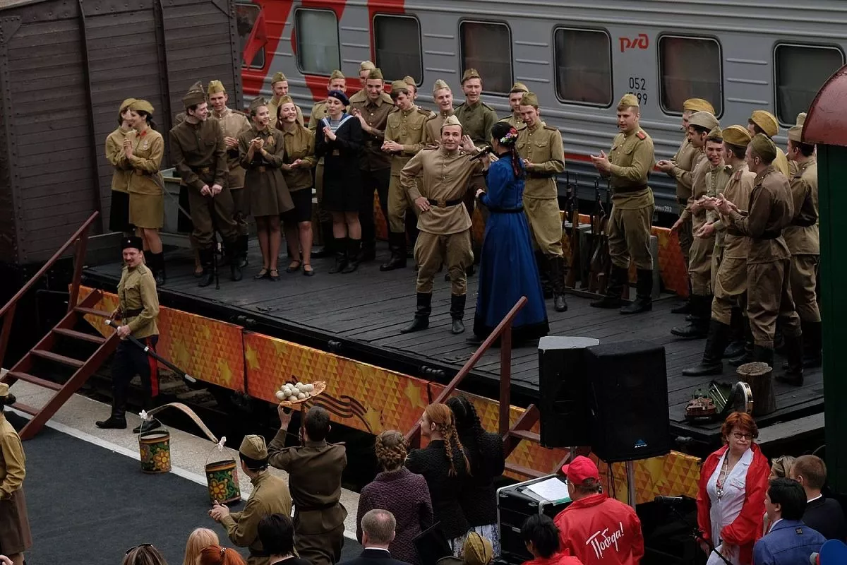 Прямо на вокзале для ветеранов и участников войны, жителей и гостей города прошел праздничный концерт. Кроме того, все желающие смогли осмотреть состав изнутри.