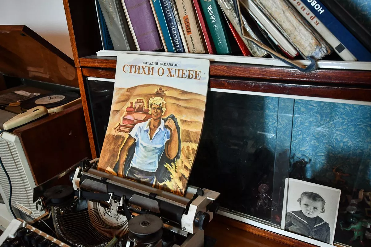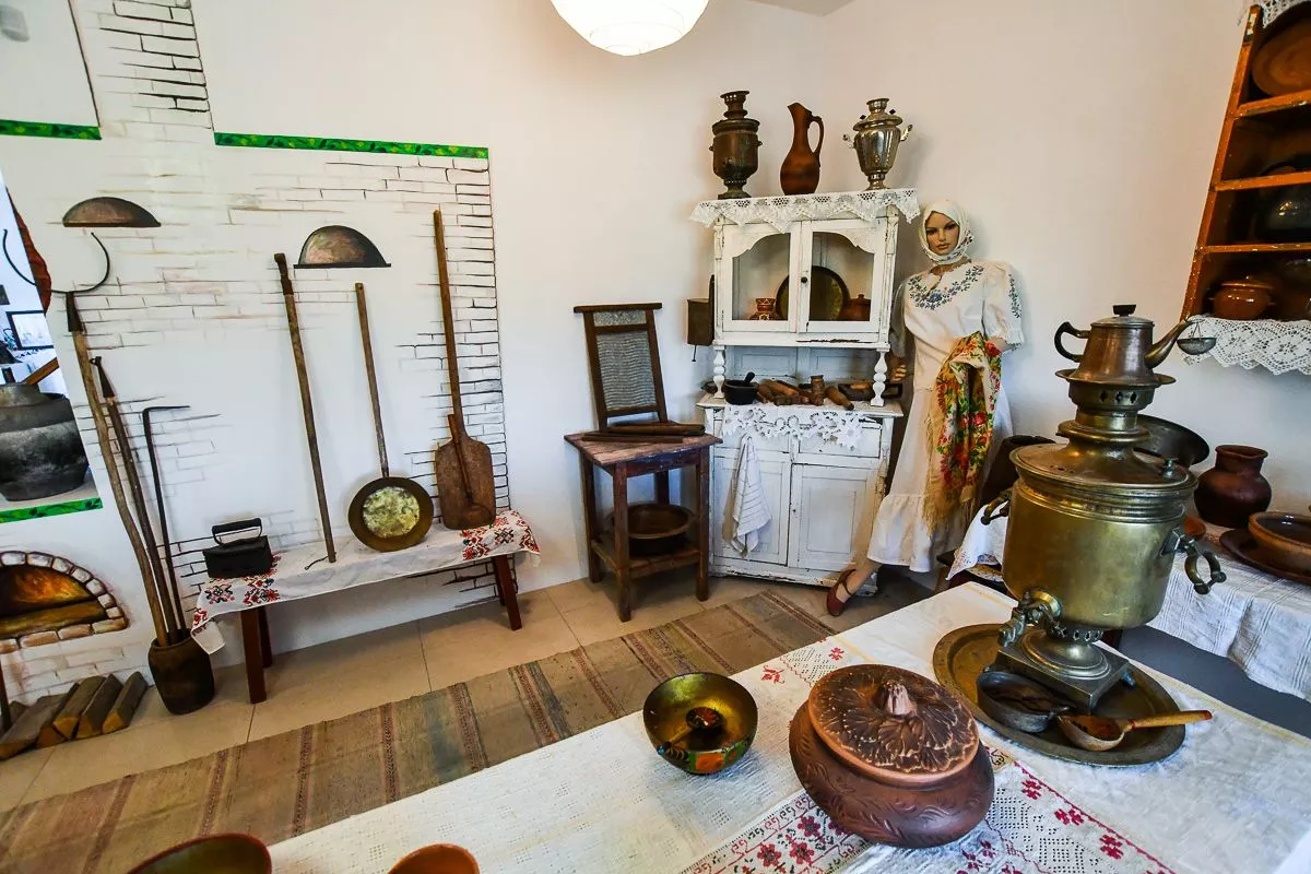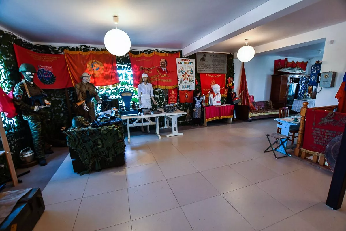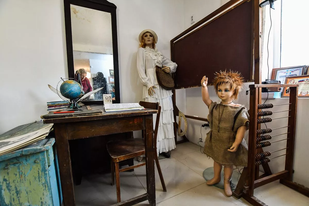 Под него Владислав отвел свой двухэтажный дом в поселке Виноградный. В залах детально воссоздал атмосферу разных эпох – например, казачьей хаты с деревянной прялкой, глиняной посудой, чугунками и плетеной люлькой или уголка церковно-приходской школы начала XX века. А вот и типичная «совковая» комната с платяным шкафом, креслом-качалкой и пестрым ковром на стене.