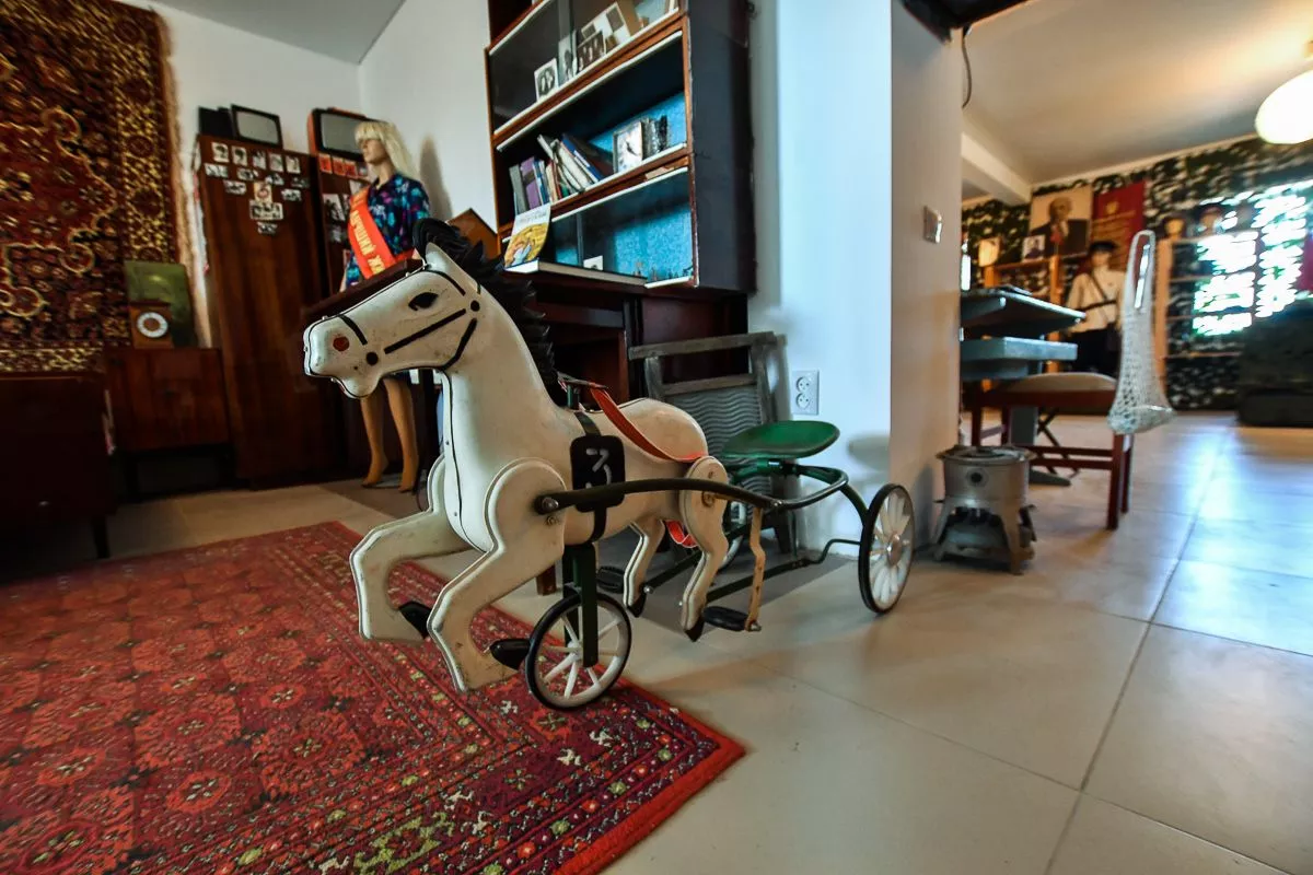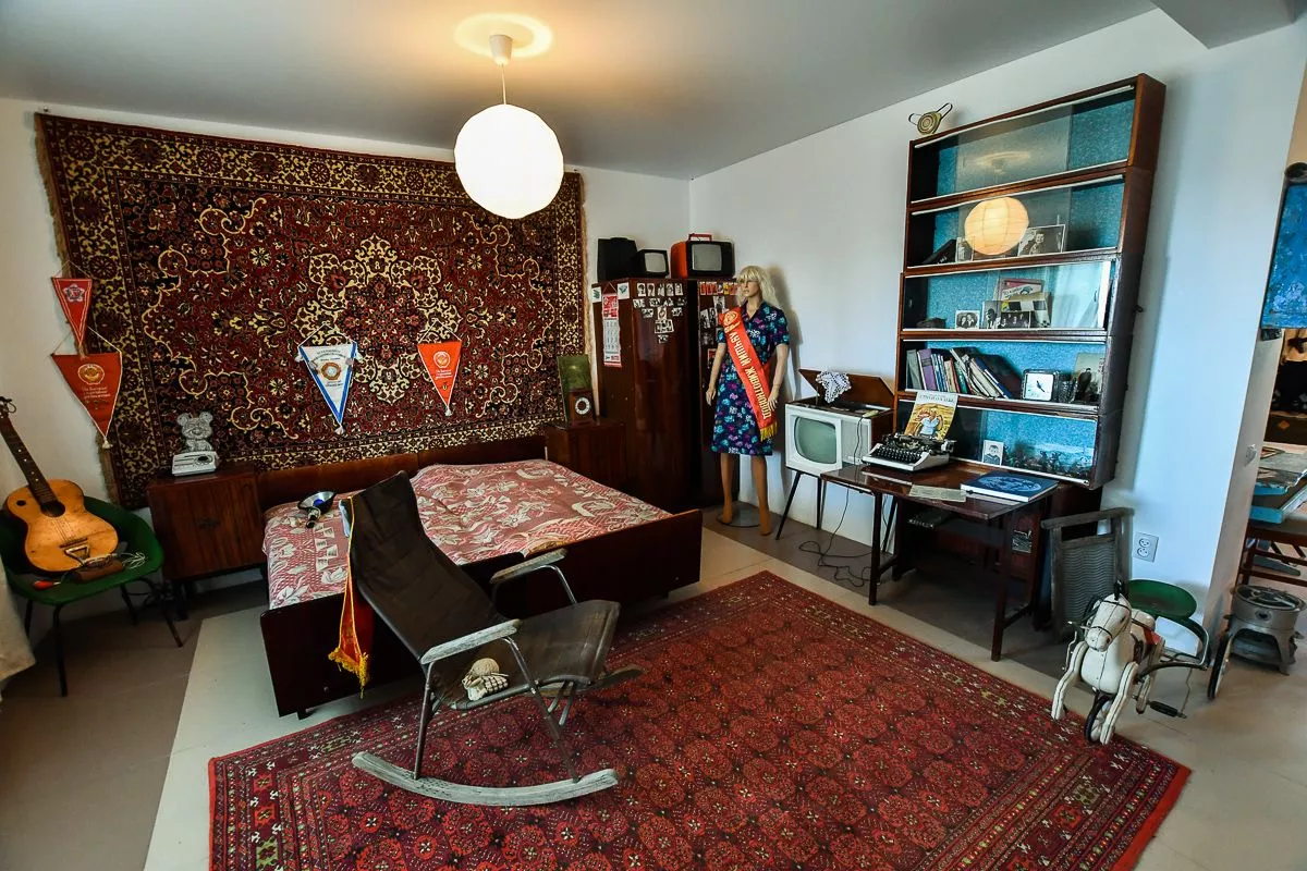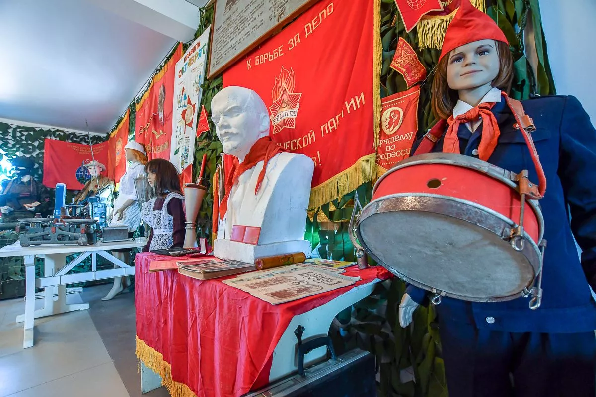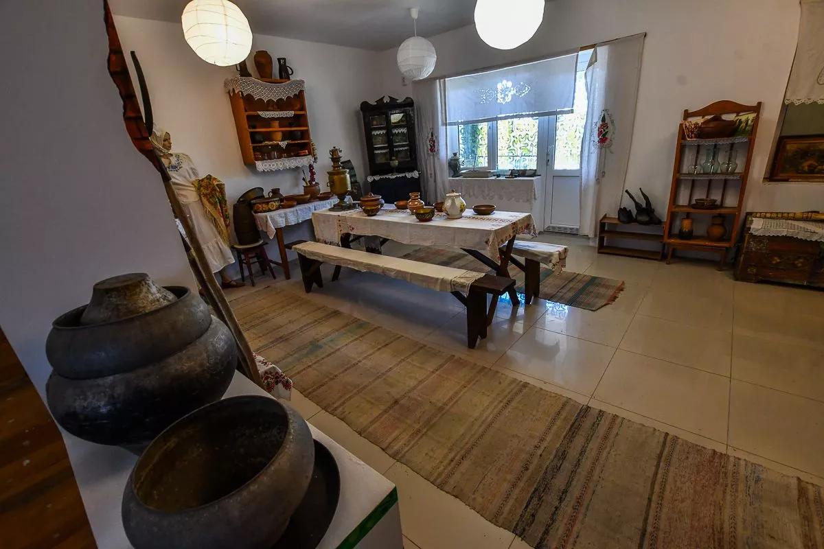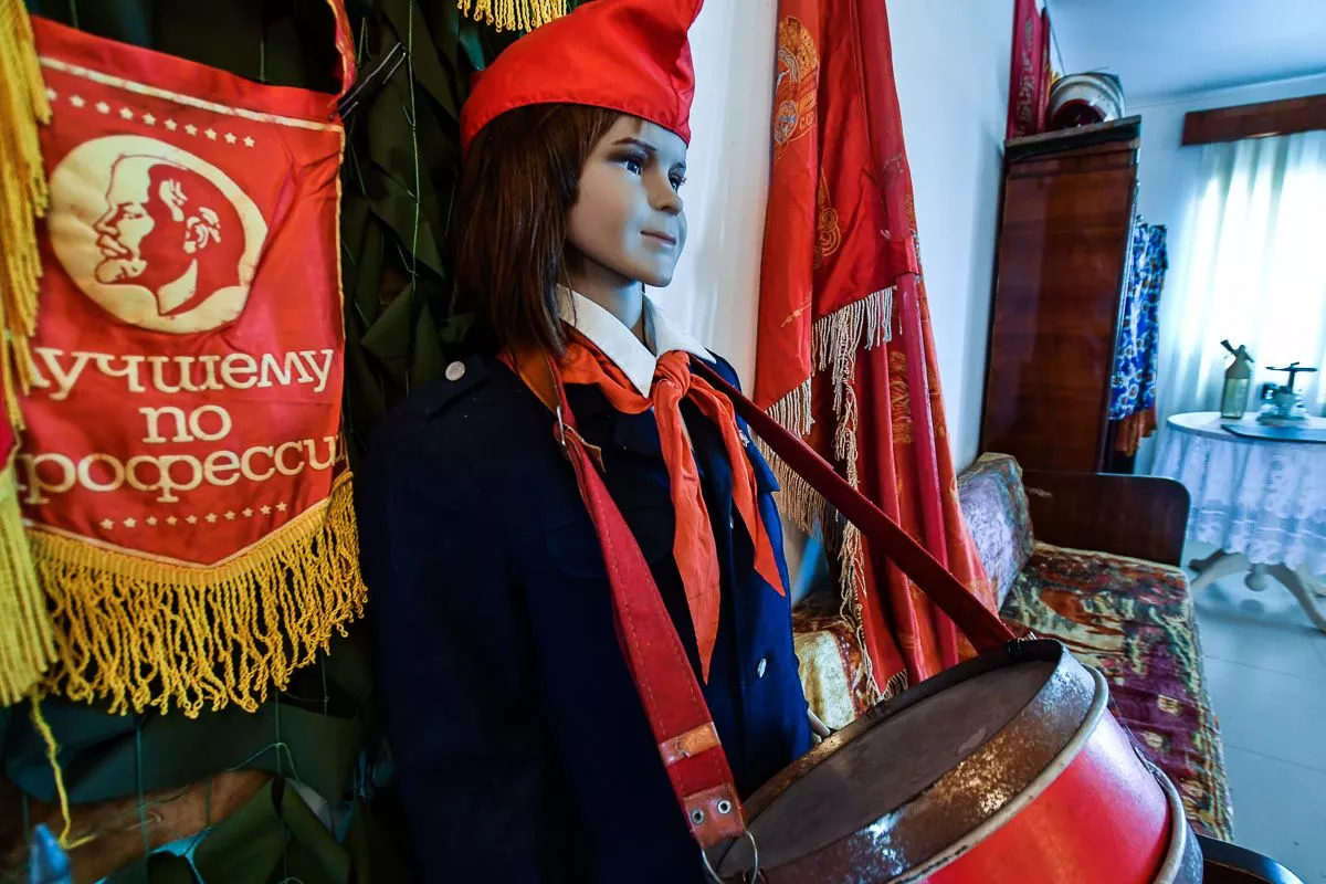 Под него Владислав отвел свой двухэтажный дом в поселке Виноградный. В залах детально воссоздал атмосферу разных эпох – например, казачьей хаты с деревянной прялкой, глиняной посудой, чугунками и плетеной люлькой или уголка церковно-приходской школы начала XX века. А вот и типичная «совковая» комната с платяным шкафом, креслом-качалкой и пестрым ковром на стене.