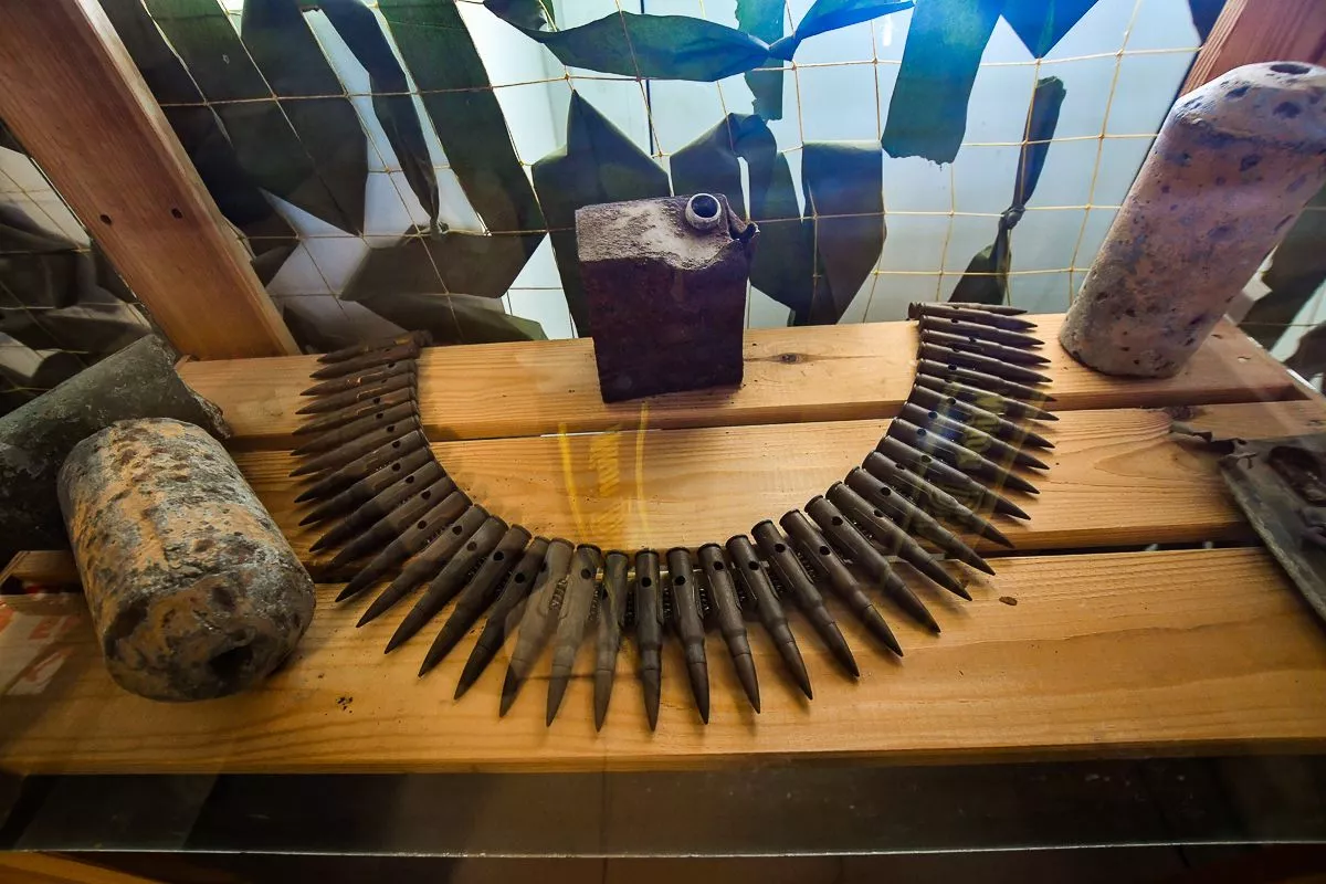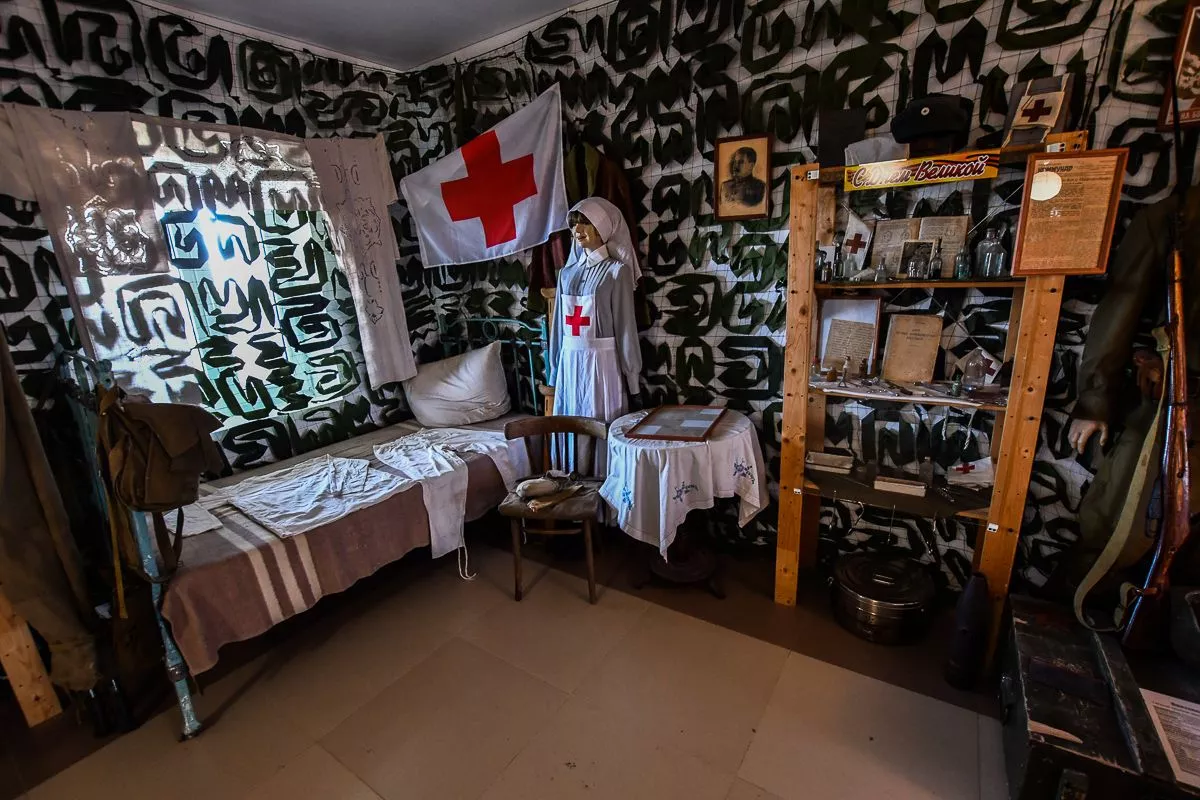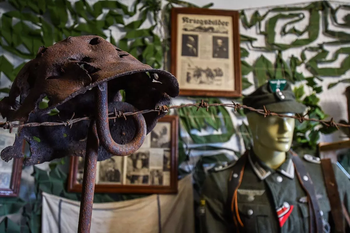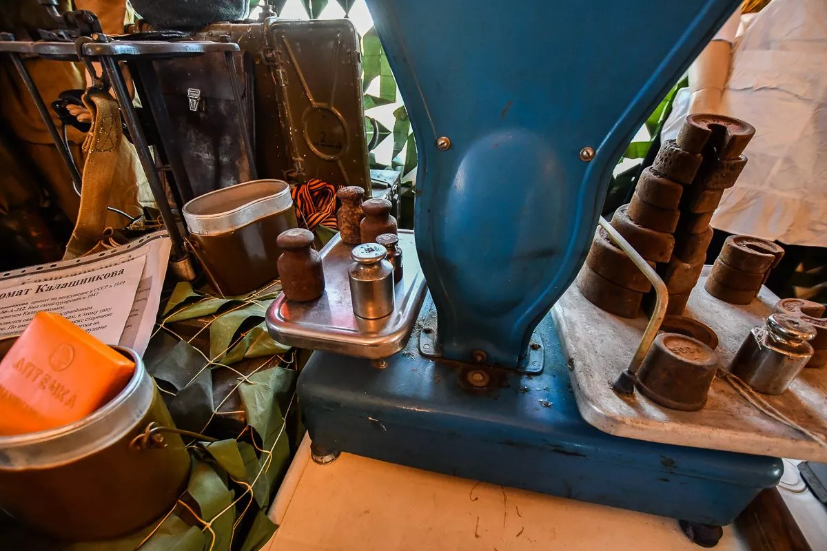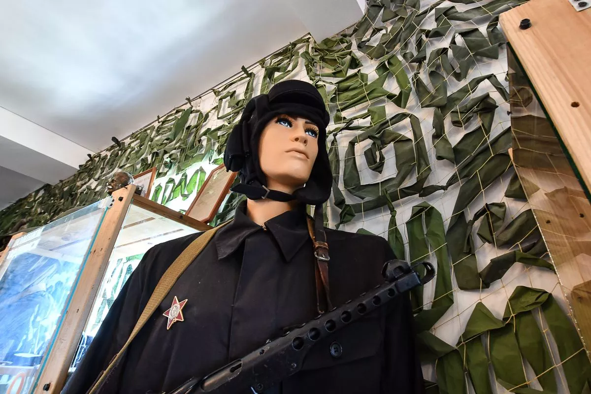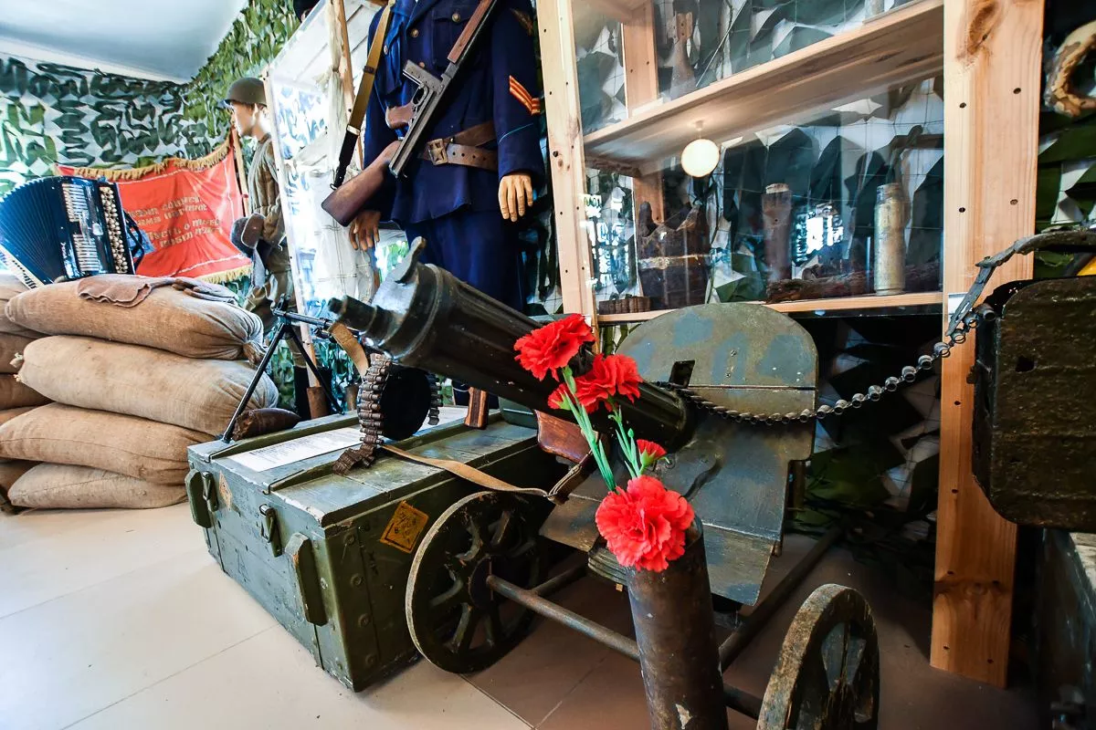 Отдельное место занимают экспонаты времен Первой мировой и Великой Отечественной войн. Здесь первые советские бронежилеты, больше похожие на средневековые кирасы, пулеметы, противотанковое ружье, гранаты. И даже походный немецкий блиндаж.