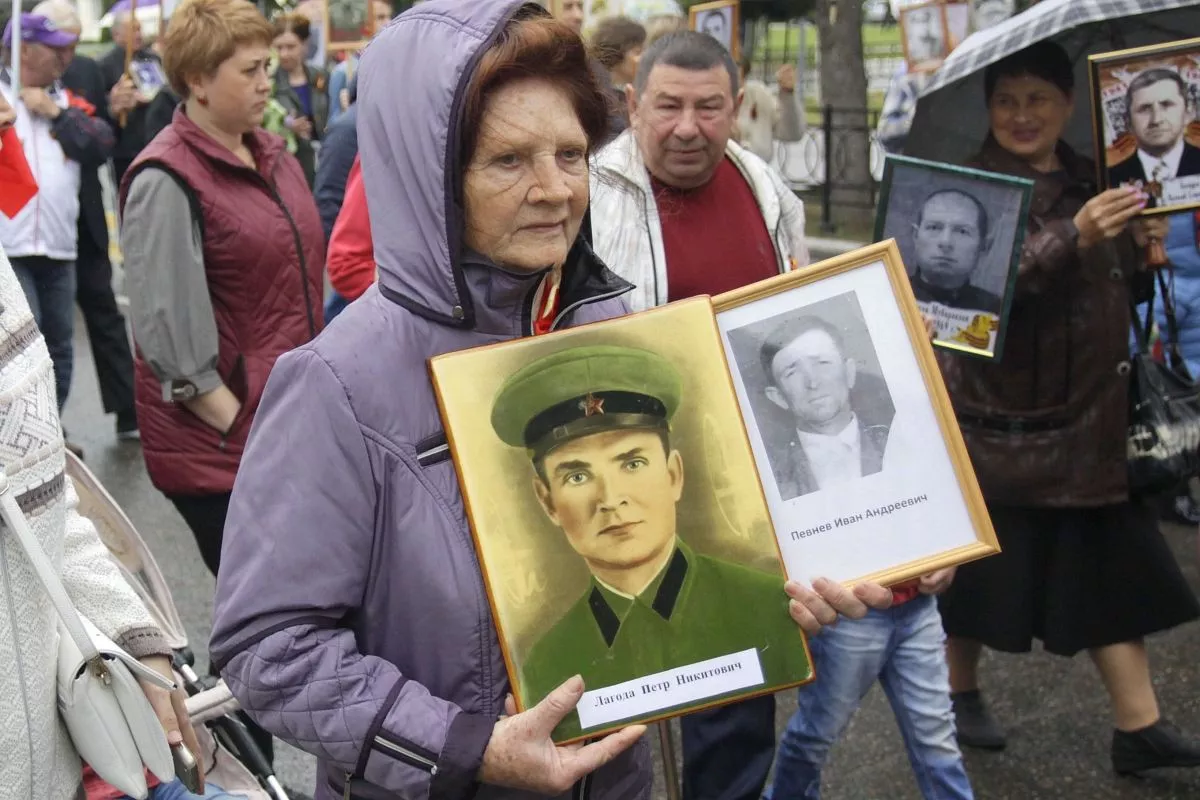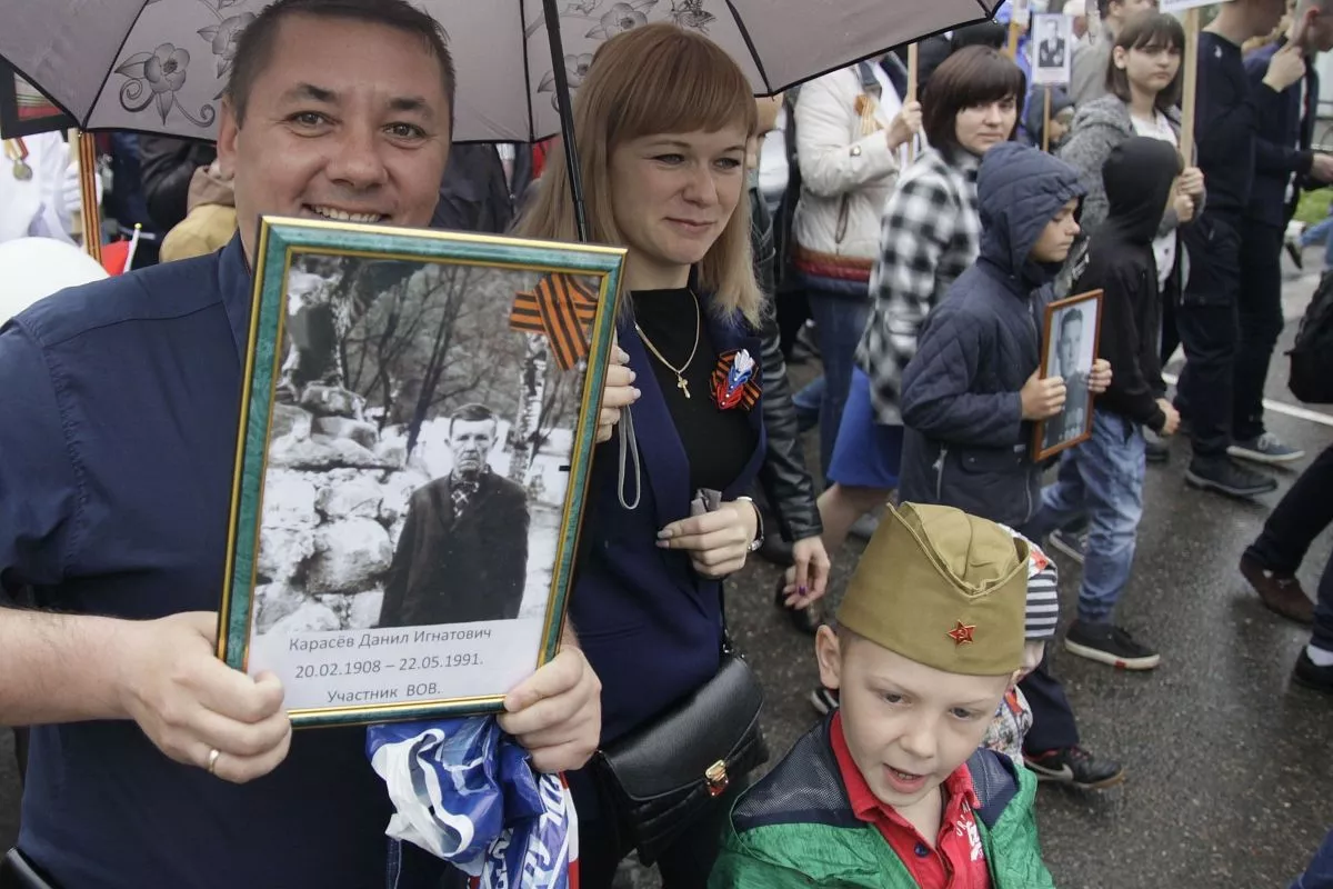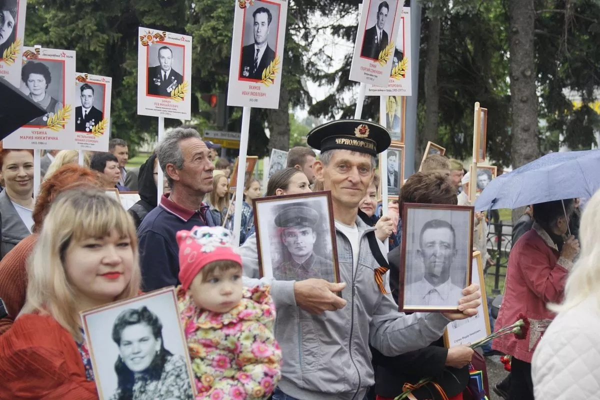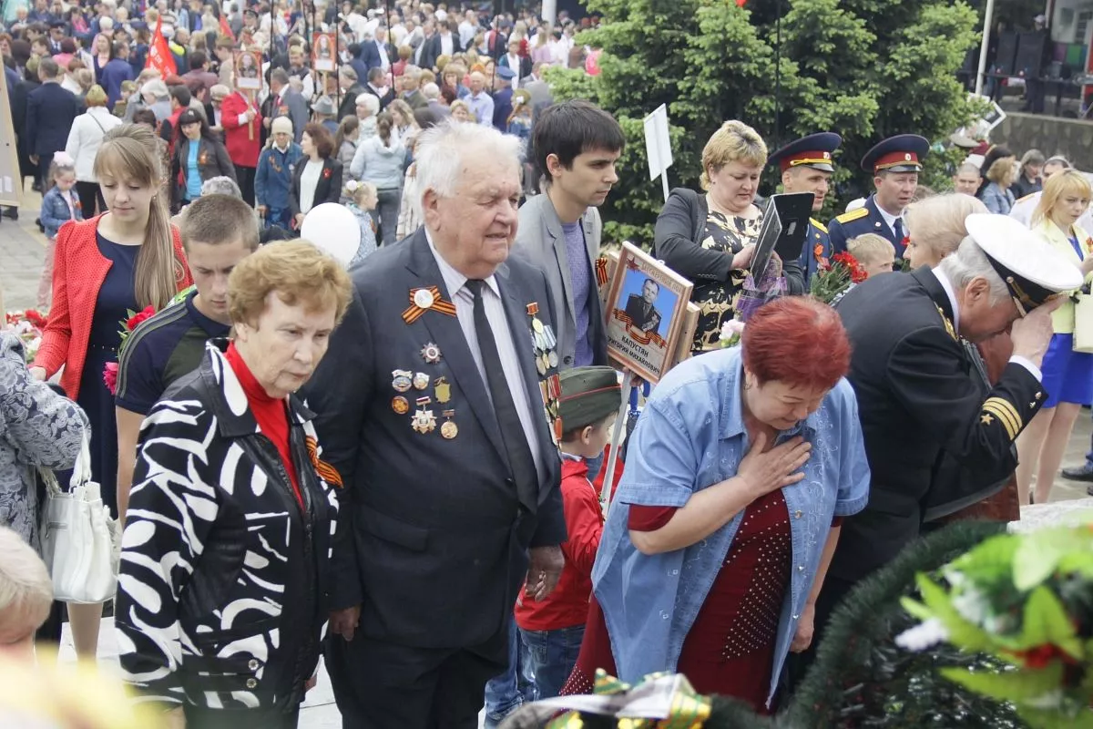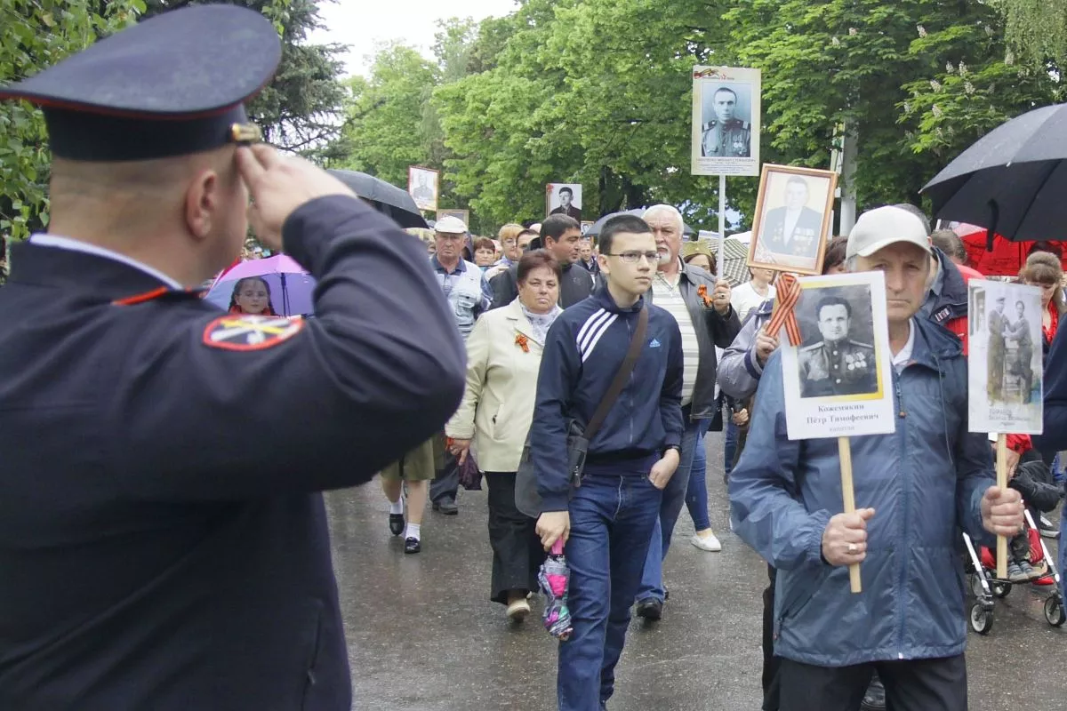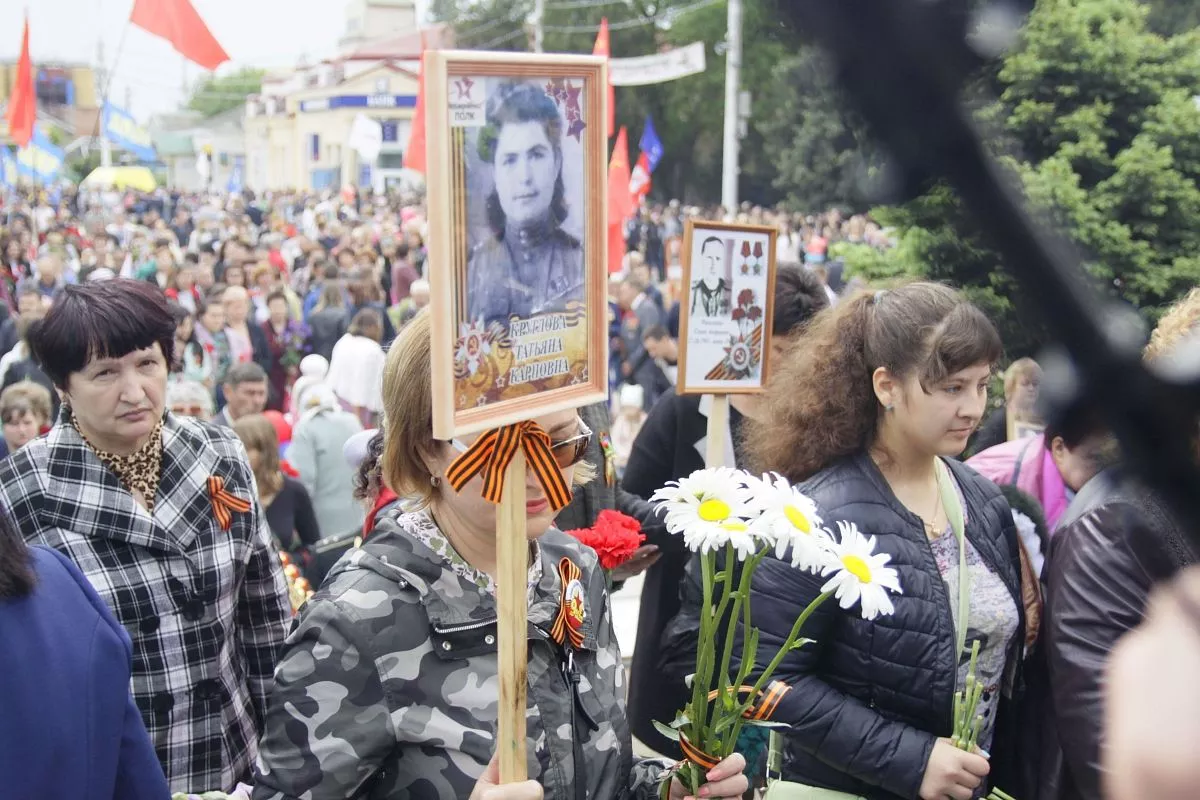 Жители города и соседних станиц пронесли портреты своих родных - участников Великой Отечественной войны.