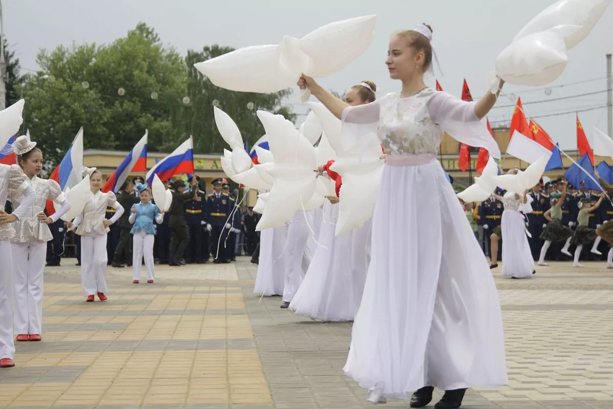 На главной площади участников массового шествия приветствовали участники праздника, посвященного 73-й годовщине Победы. Среди почетных гостей ветераны: