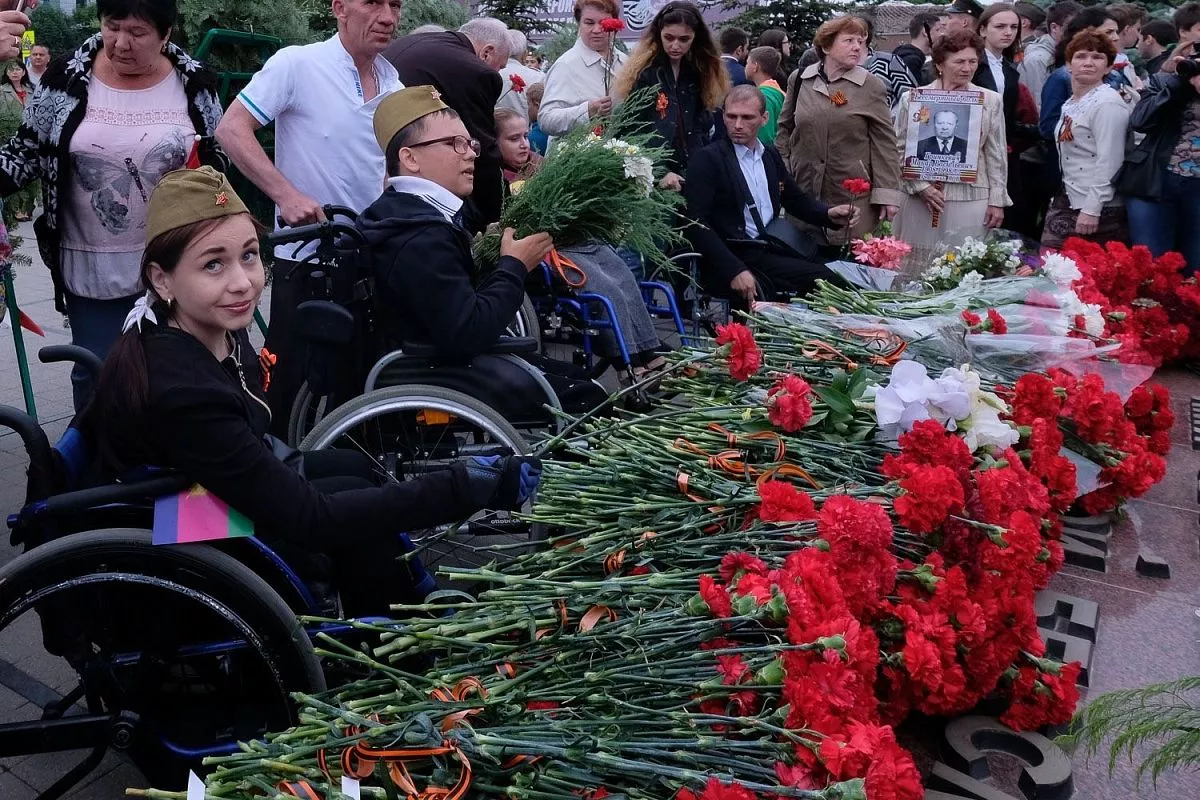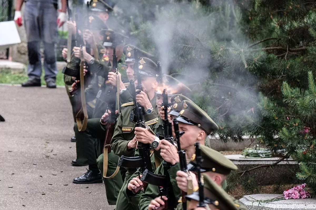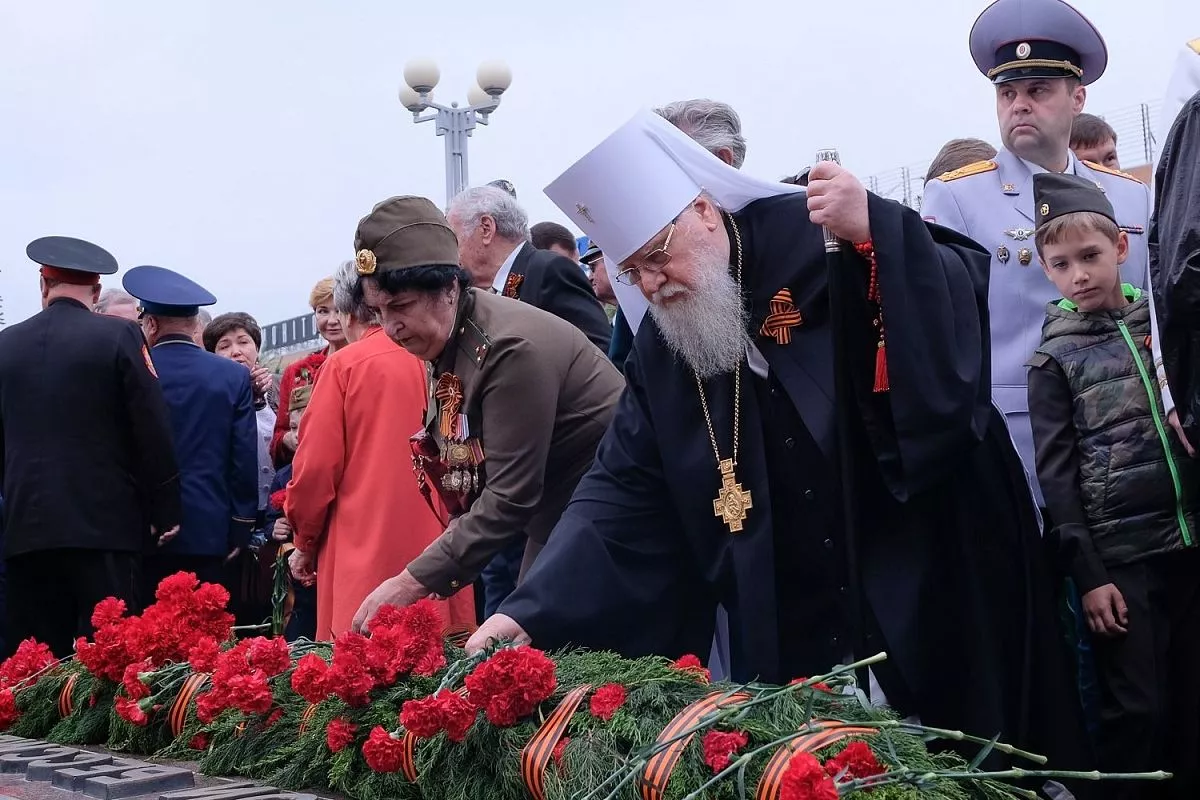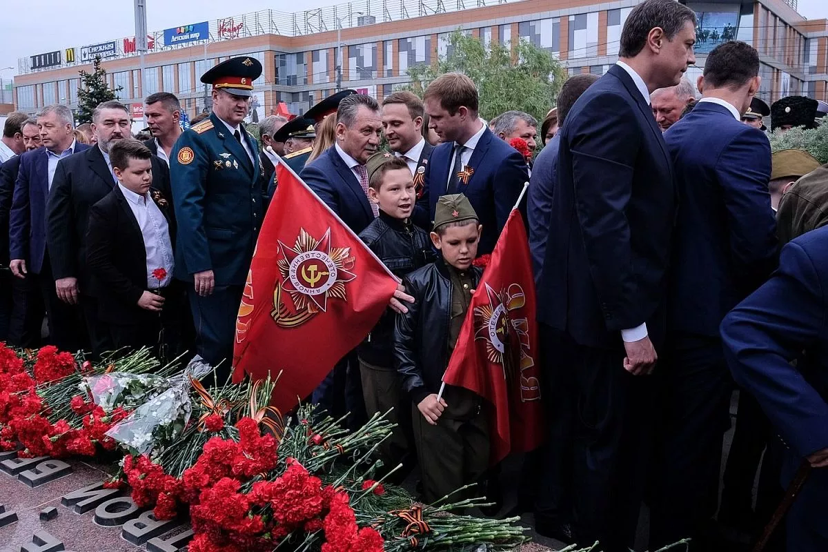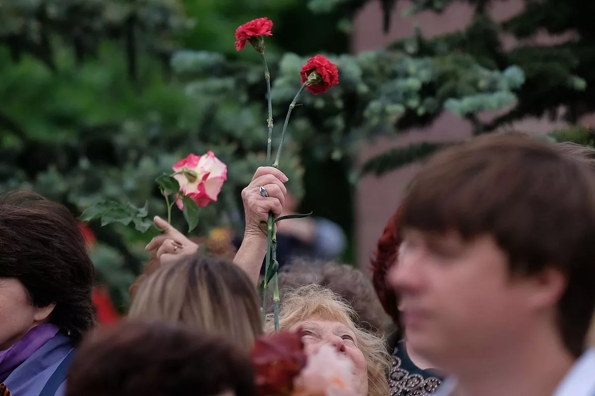 В 10.00 прошла торжественная церемония возложения венков и цветов погибшим защитникам Отечества на площади Памяти Героев у Вечного огня.