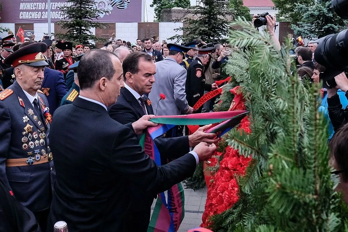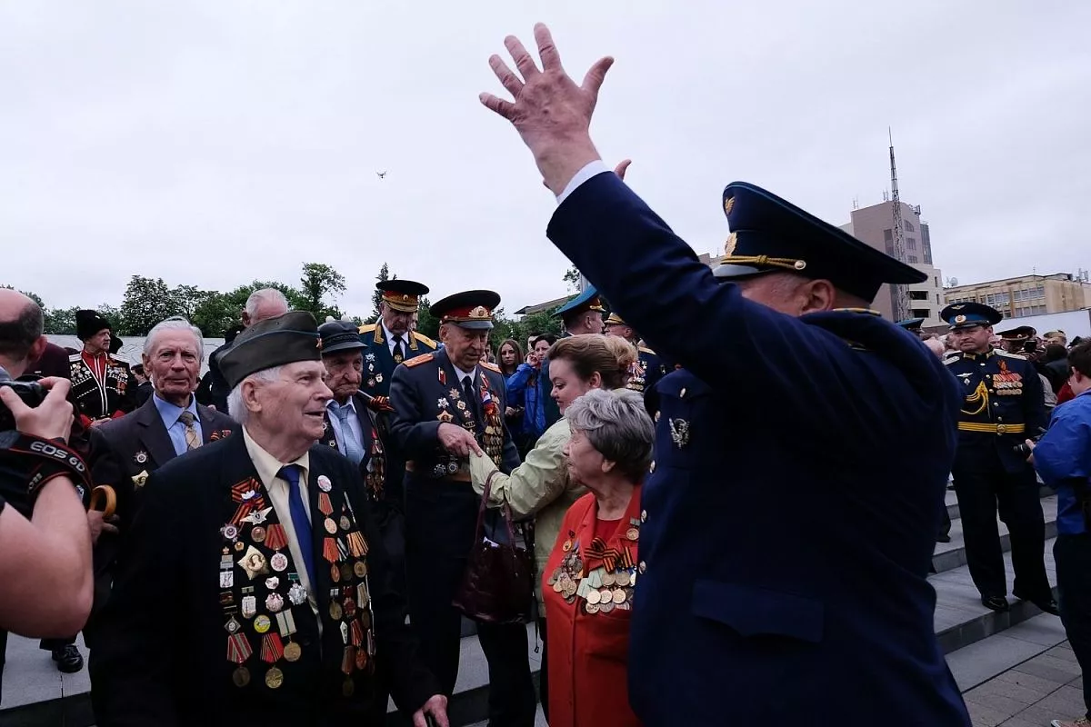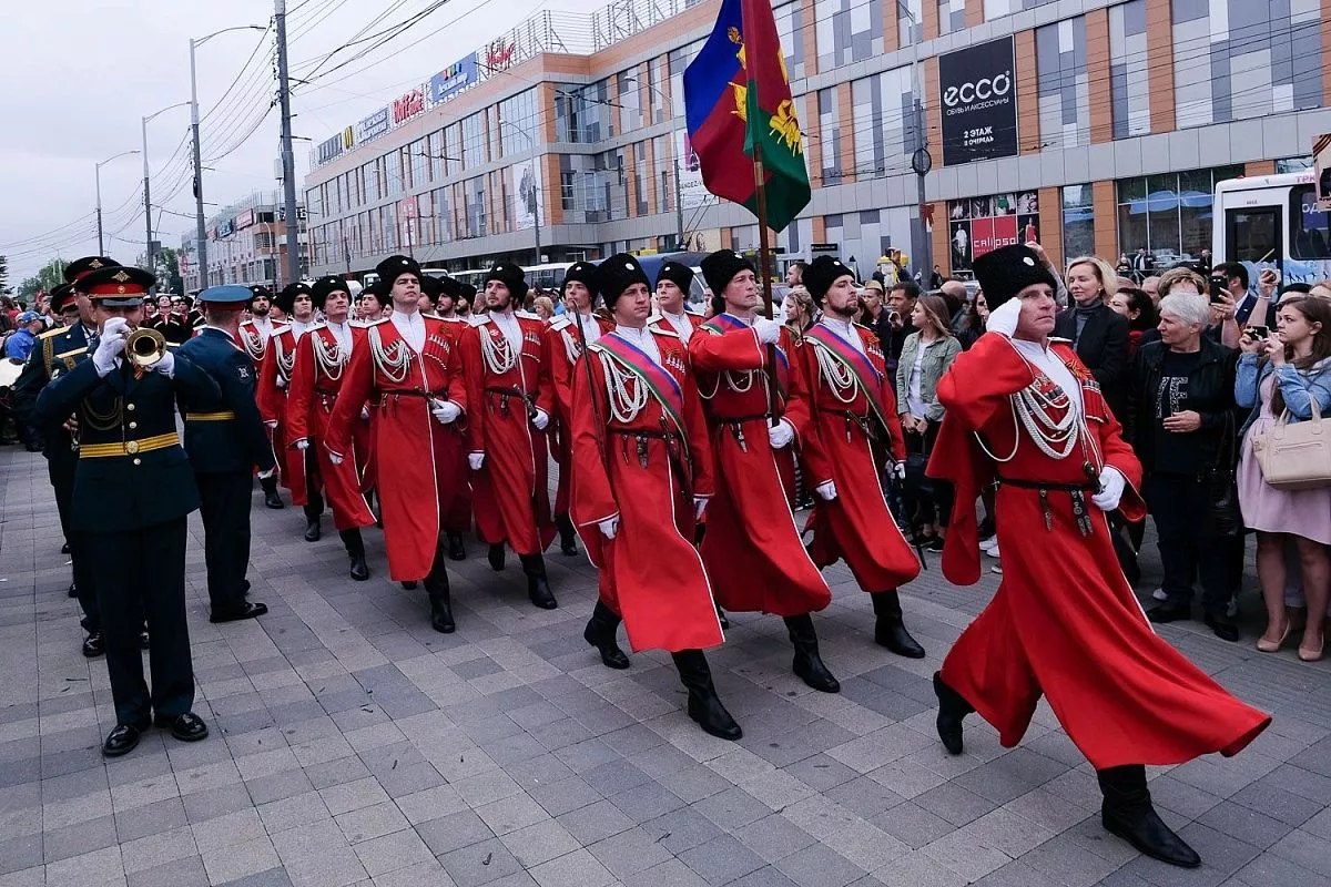 В 11.00 на Театральной площади началось торжественное прохождение войск Краснодарского территориального гарнизона, посвящённое 73-й годовщине Победы.