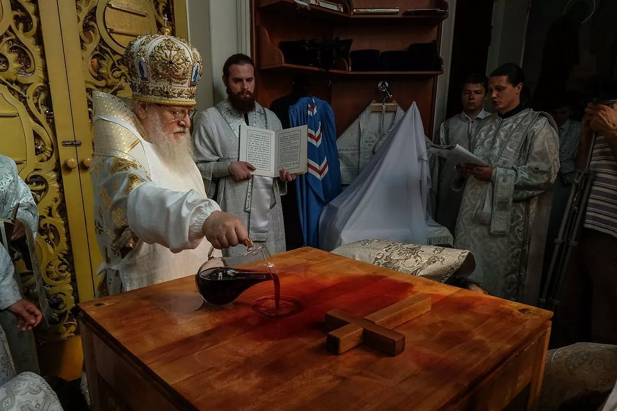 Освящение престола храма было совершено в связи с большой реставрацией. За прошедший год в храме была произведена роспись белых стен притвора, постелен каменный пол, установлены резные двери, произведено золочение потертых киотов и стен.