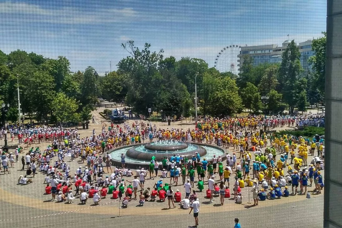 На площади перед Законодательным Собранием Краснодарского края танцевали 1,8 тыс. лучших выпускников 2018 года.