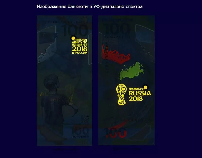 22 мая Центробанк выпустил в обращение 100-рублевые купюры с символикой чемпионата мира по футболу - 2018, который проходит в России.