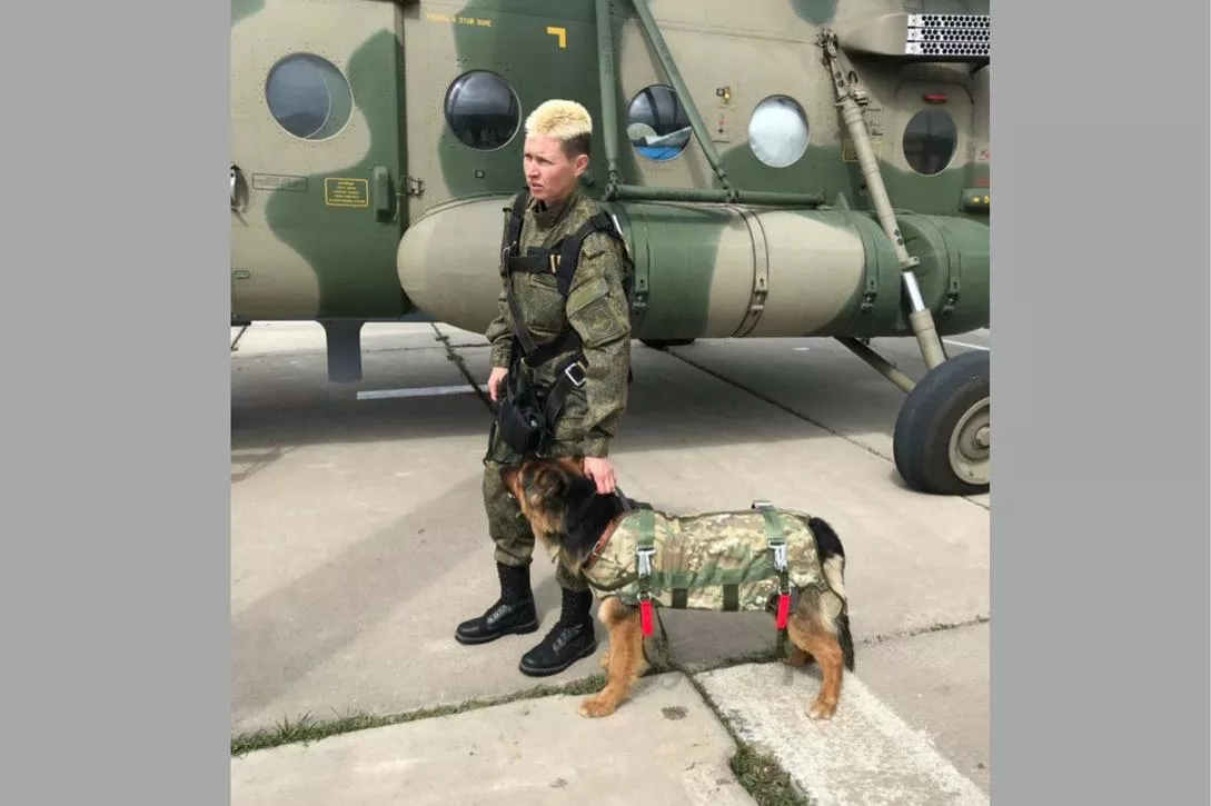 В Новороссийске старший лейтенант Наталья Береза совершила прыжок вместе с немецкой овчаркой по кличке Миша.