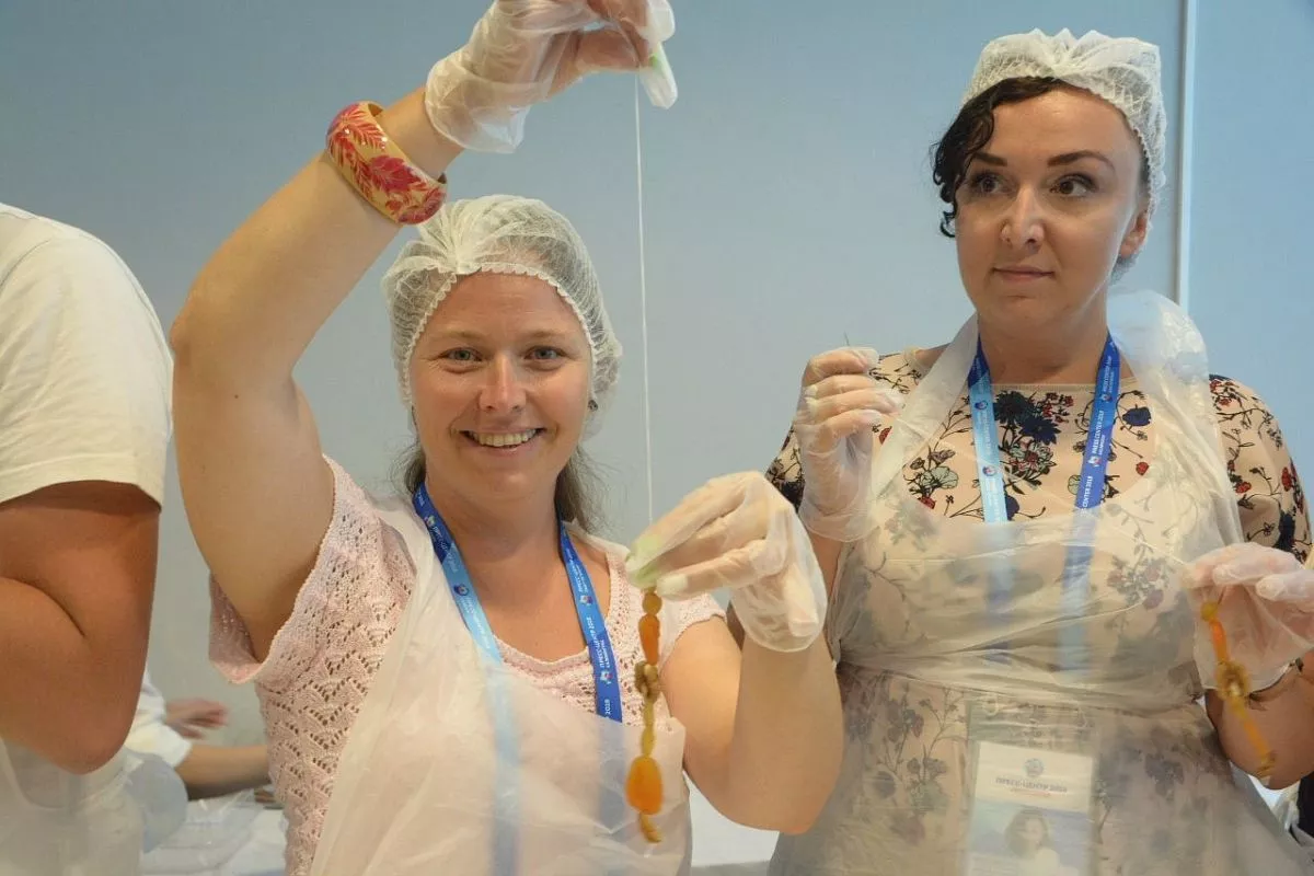 К сожалению, вкусить лакомство, приготовленное собственными руками, участникам кулинарного мастер-класса не удастся. Для полного приготовления чурчхела должна несколько дней просохнуть на солнце.