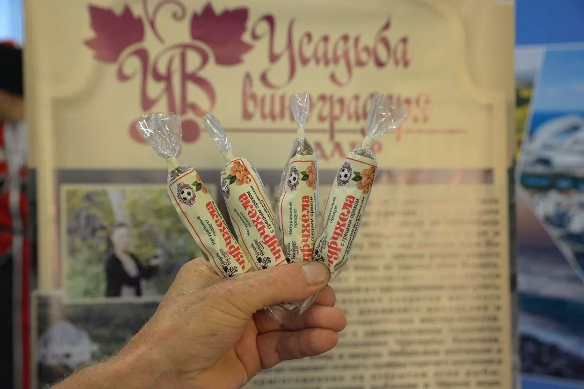 - Здесь всегда рос виноград, фрукты и орехи, из которого наши предки и готовили чурчхелу и брали с собой, чтобы не остаться голодным, - нанизывая орехи на нитку, поясняла Викторина Дырдина. - На днях мы уже проводили мастер-класс по приготовлению чурчхелы для гостей из Панамы. У них не растет виноград и грецкий орех, и они были просто в восторге, когда нанизывали на нитку фрукты. Сравнивали это с бусами, говорили: чурчхела совмещает приятное с полезным, это и украшение, и еда. Среди них был один фермер, который сказал: все, это мой бизнес, я теперь знаю, чем буду заниматься дома.