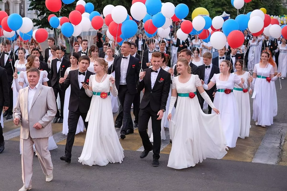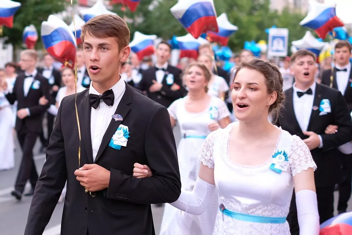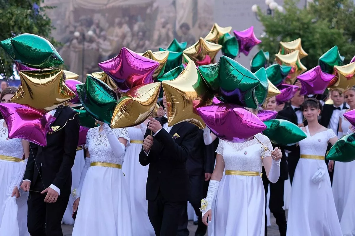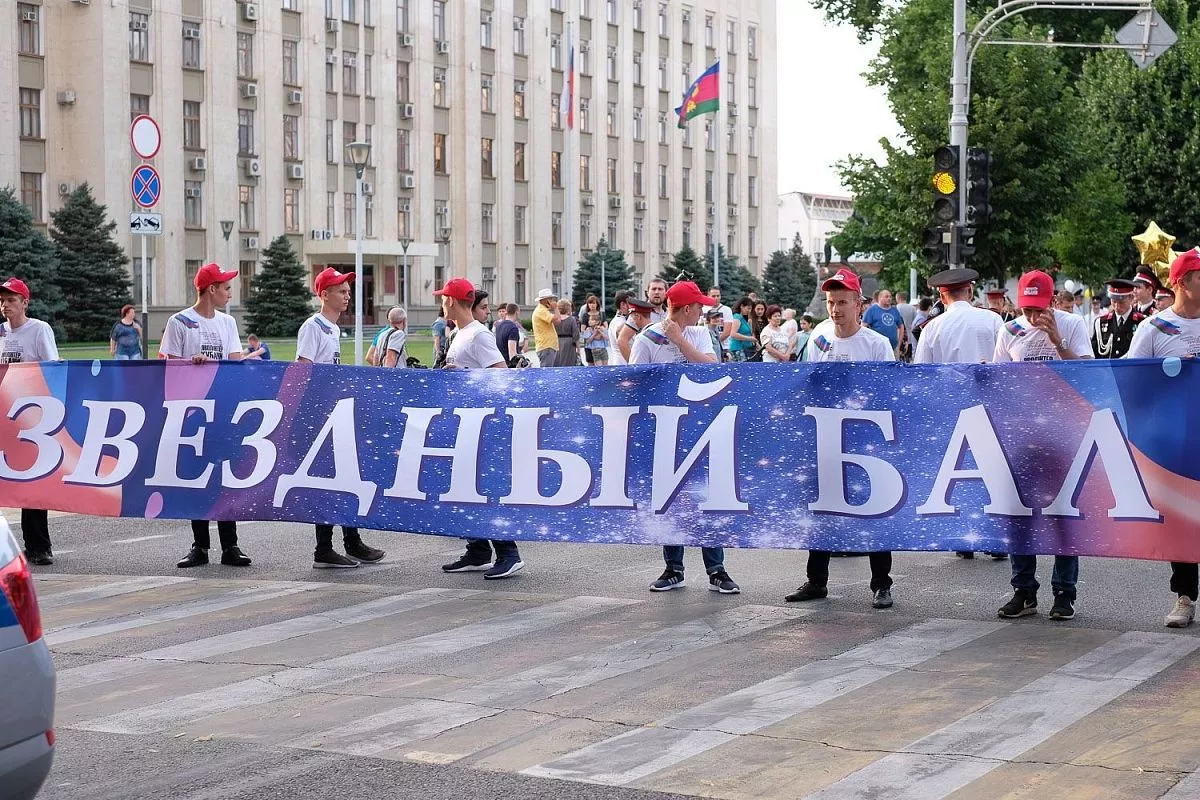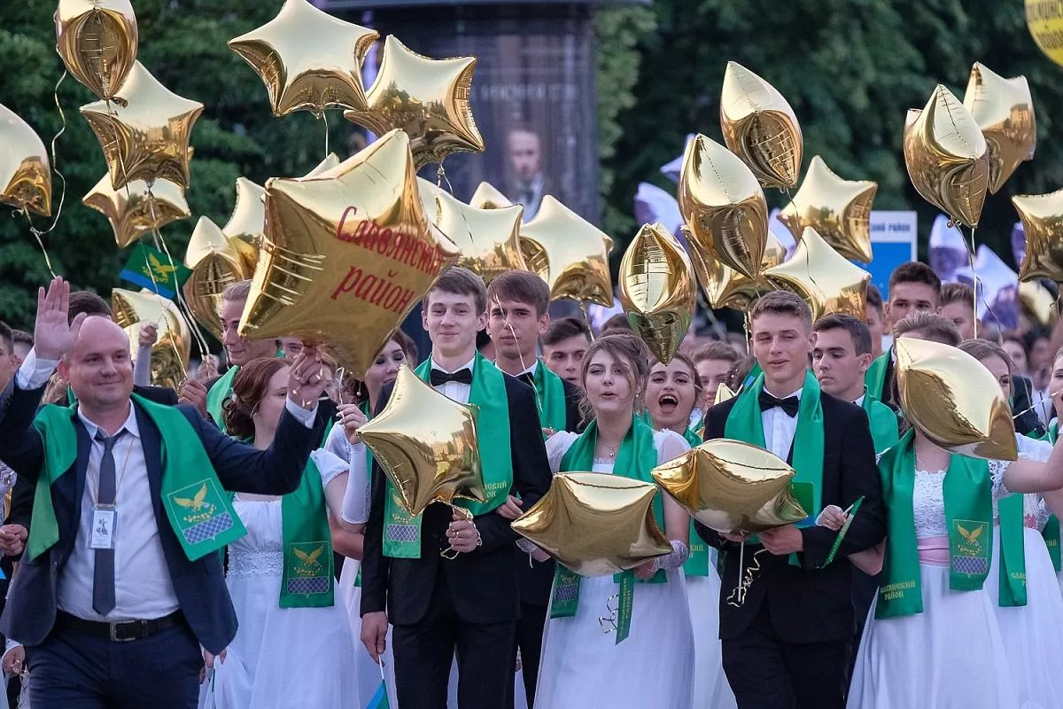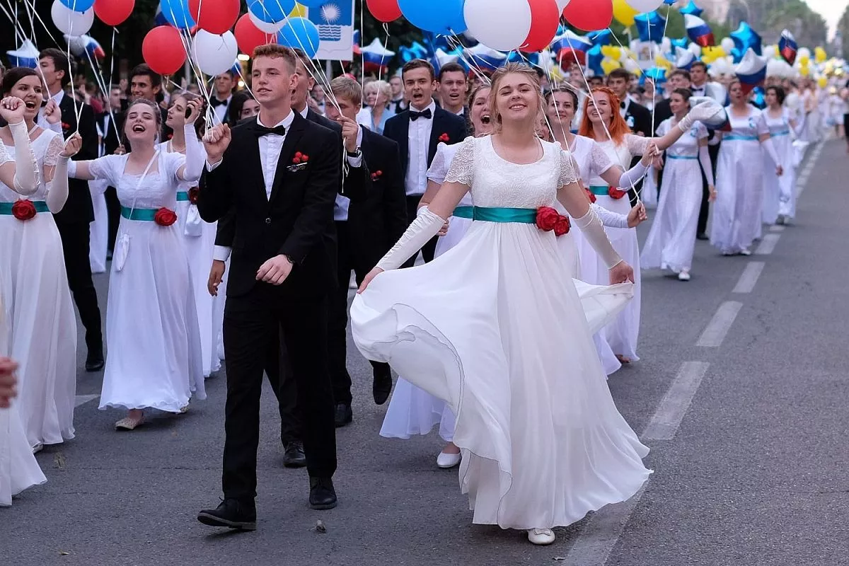 Колонна выпускников прошла от сквера Жукова до площади перед зданием ЗСК. В Краснодар для участия в бале приехали лучшие выпускники из всех городов и районов края - отличники, активисты, победители различных соревнований и олимпиад.