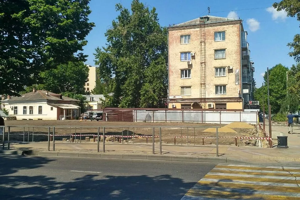 В центре Краснодара убрали забор вокруг снесенного несколько лет назад старого Дома быта