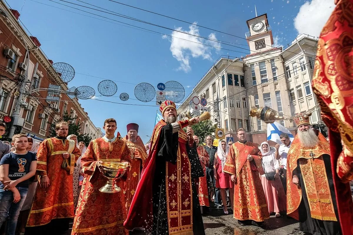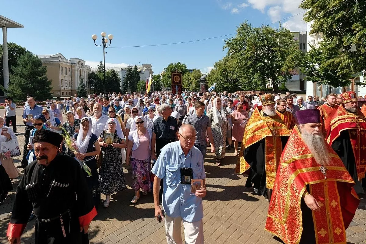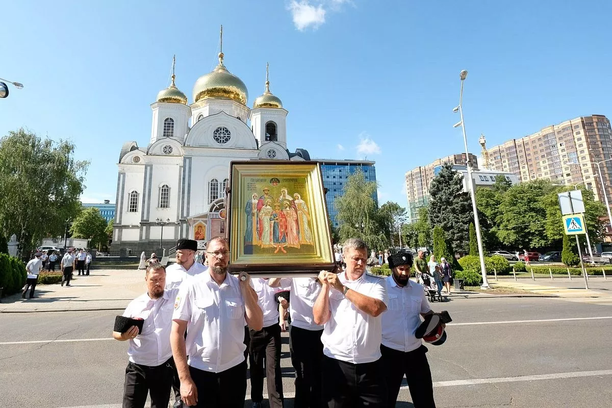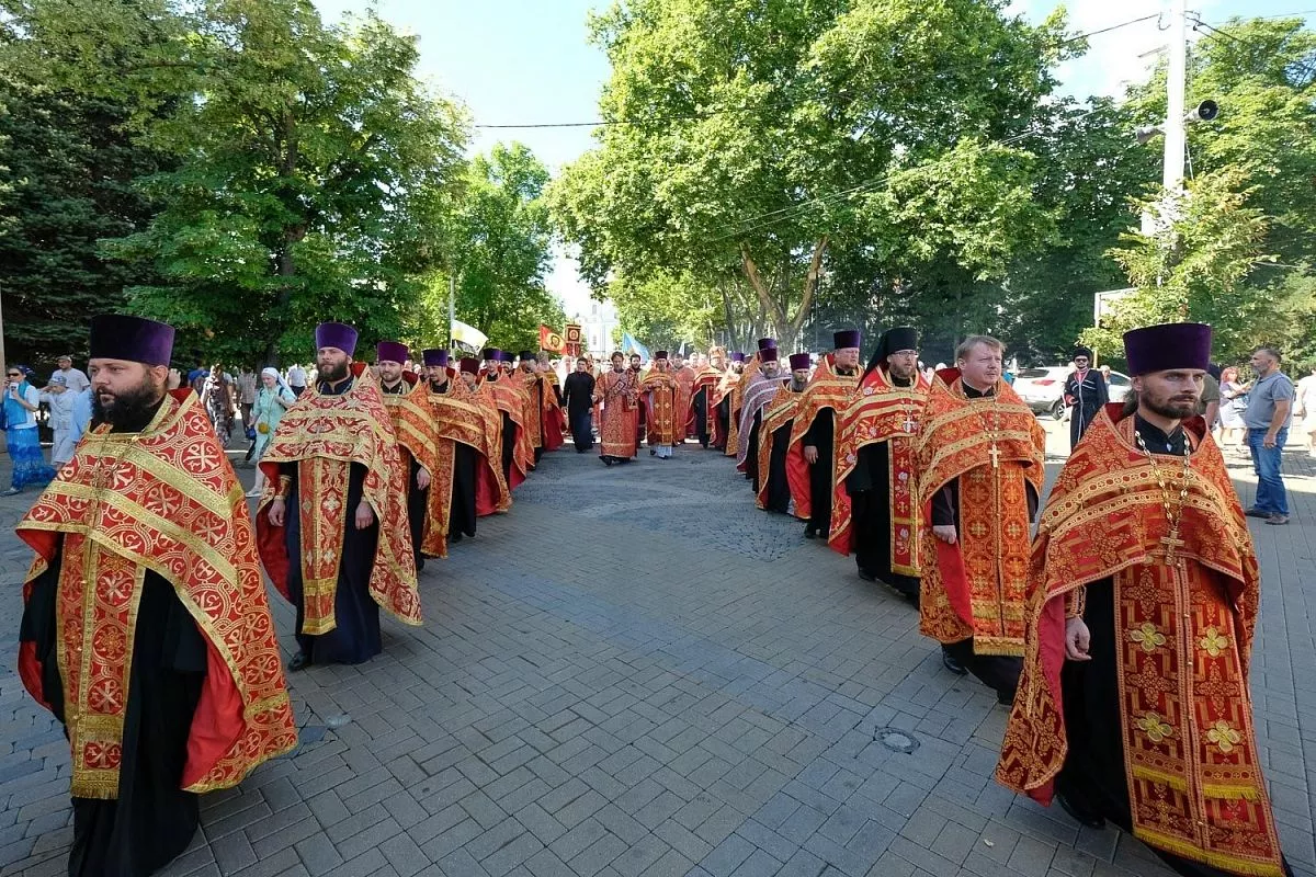 Колонна священнослужителей и прихожан утром 17 июля прошла по улице Красной от войскового Собора святого благоверного князя Александра Невского до храма-часовни Александра Невского, которая расположена в сквере Жукова.