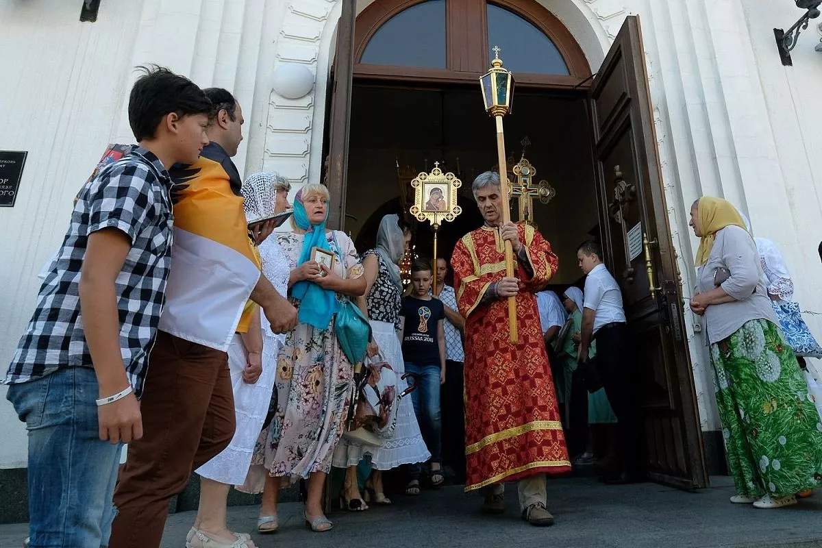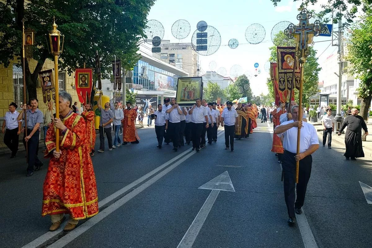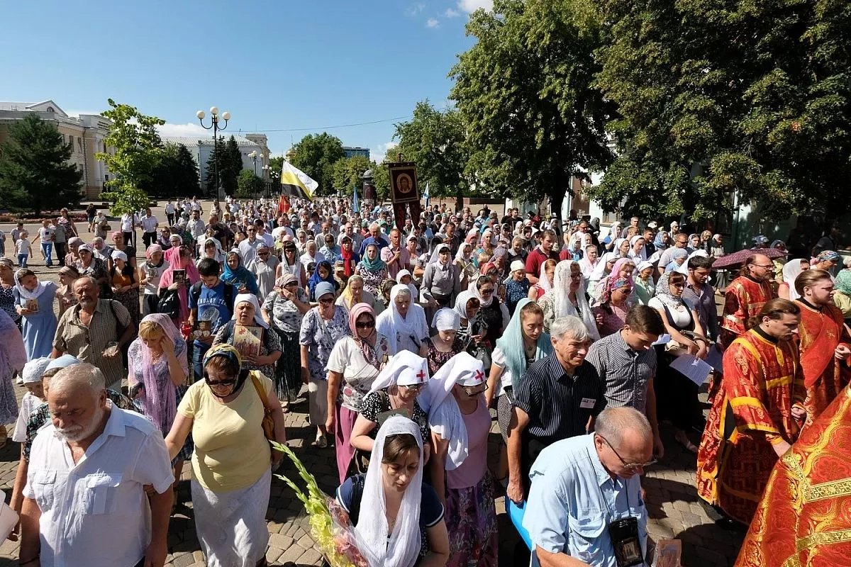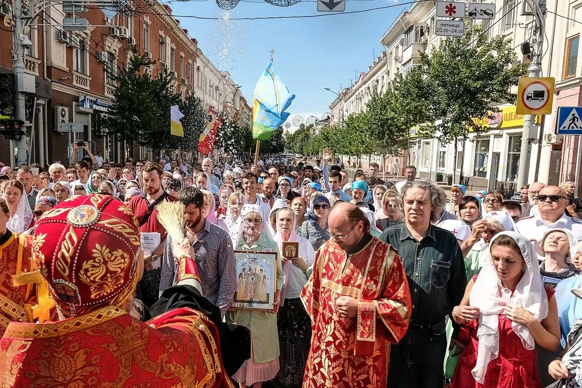 Колонна священнослужителей и прихожан утром 17 июля прошла по улице Красной от войскового Собора святого благоверного князя Александра Невского до храма-часовни Александра Невского, которая расположена в сквере Жукова.