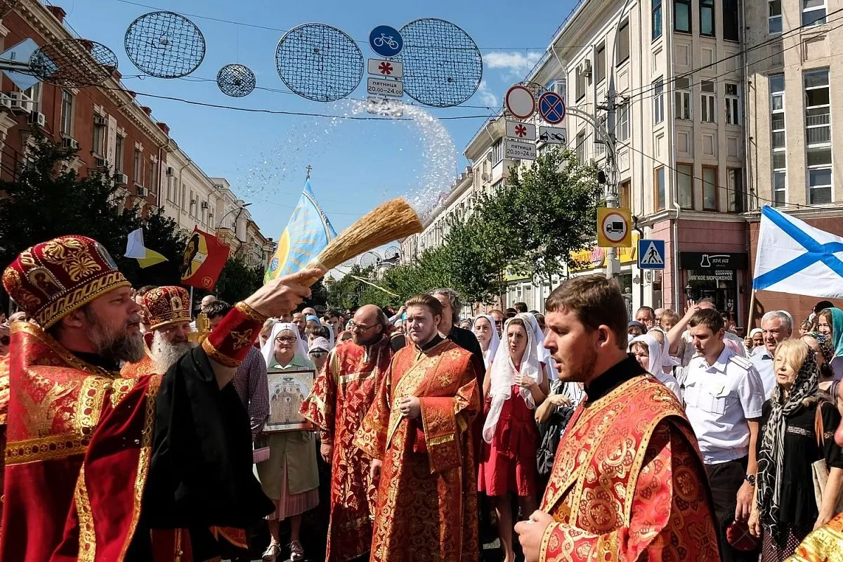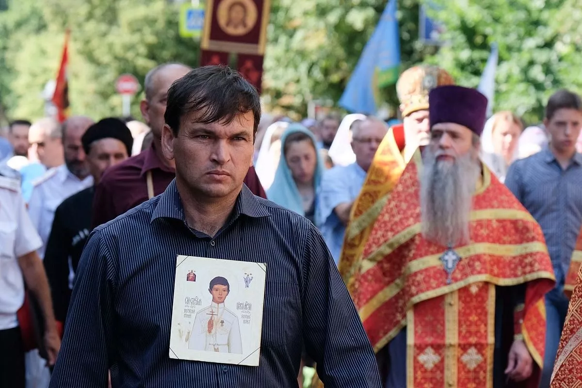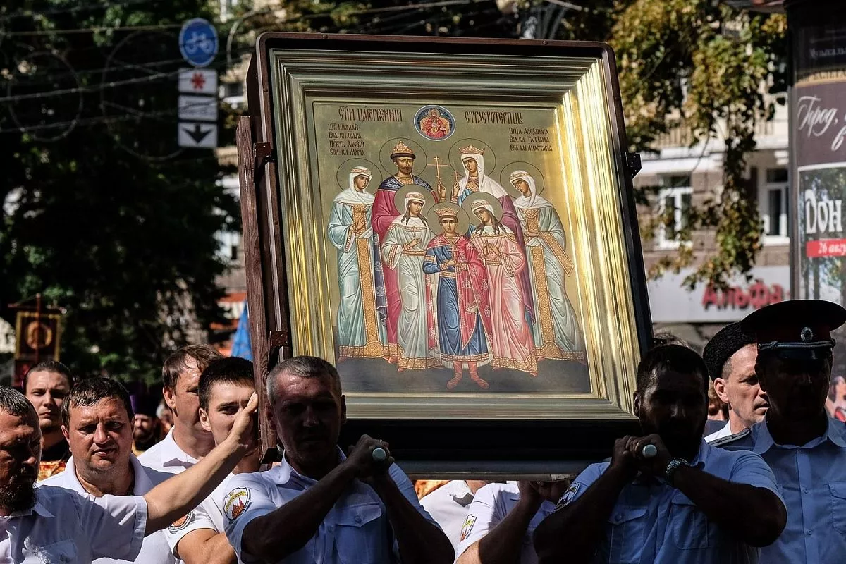 Верующие Краснодара прошли крестным ходом по главной улице города в день памяти Николая II.