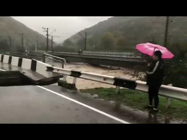Аномальный паводок на реке Макопсе в Лазаревском районе Сочи повредил подход к автодорожному мосту.