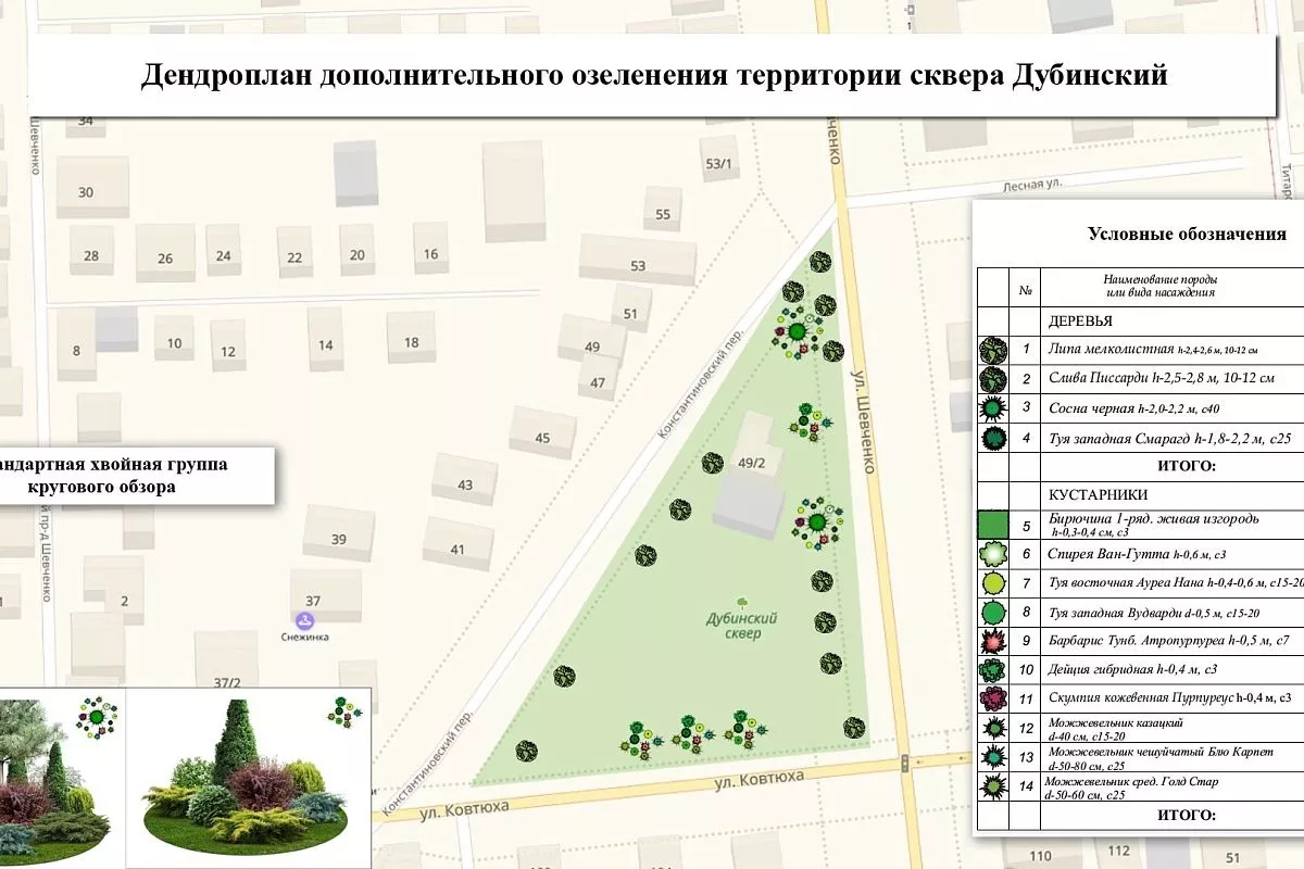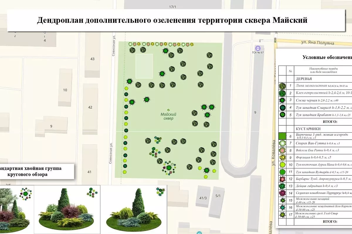 Разработаны первые проекты озеленения городских скверов с подробным перечнем рекомендуемых к высадке деревьев, кустарников и цветов по сезонам.